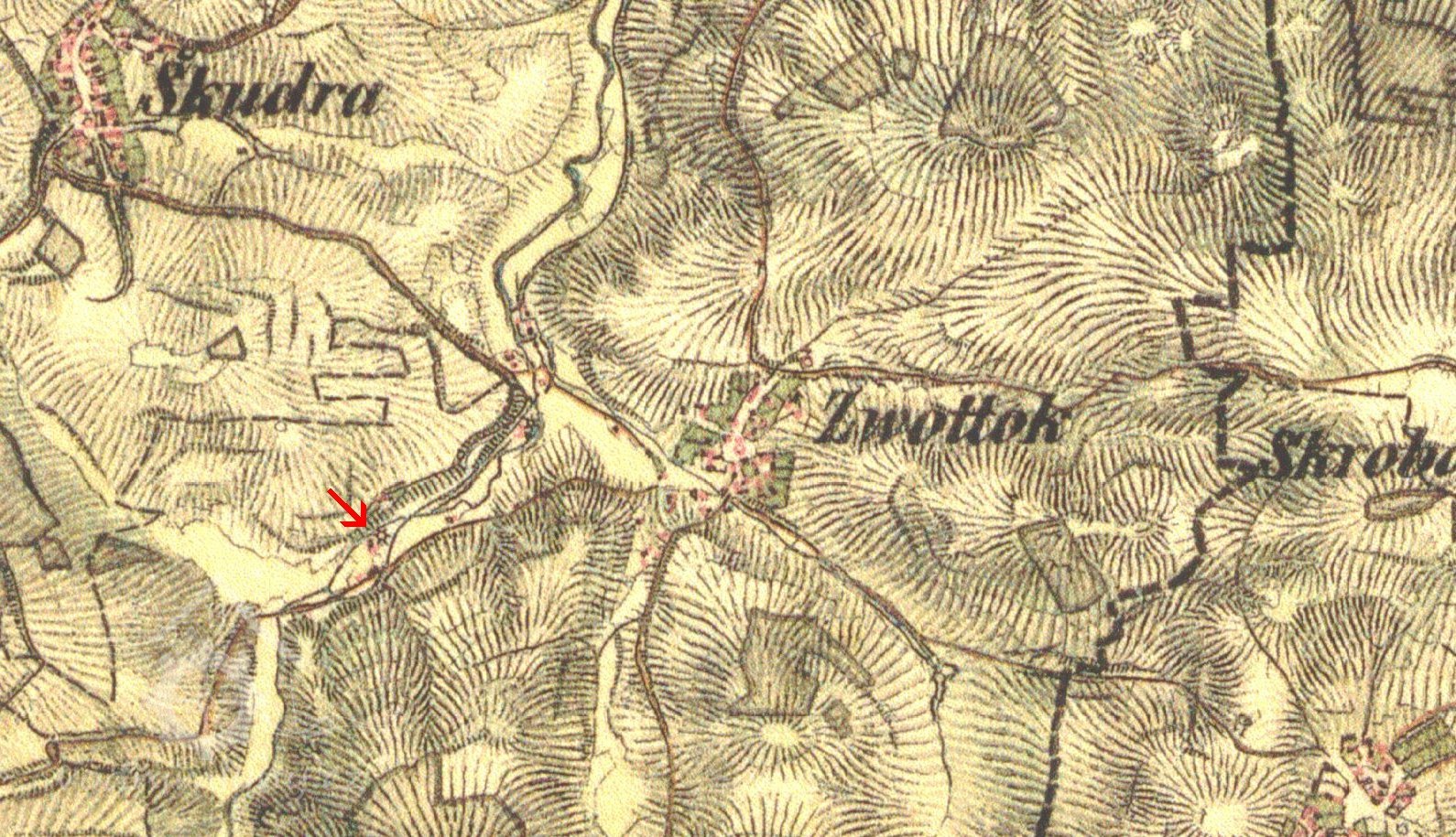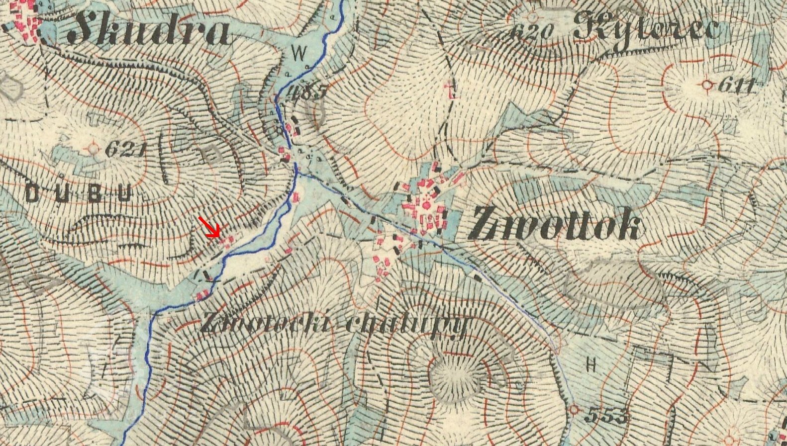 První zmínka o mlýnu pochází z roku 1388. V listině uložené v archivu Pražského hradu jsou zmíněny odvody z platů ze vsi Zvotoky a tří mlýnů pod vsí. Obytné stavení s uzavřeným dvorem a čtyřpodlažní mlýnicí.