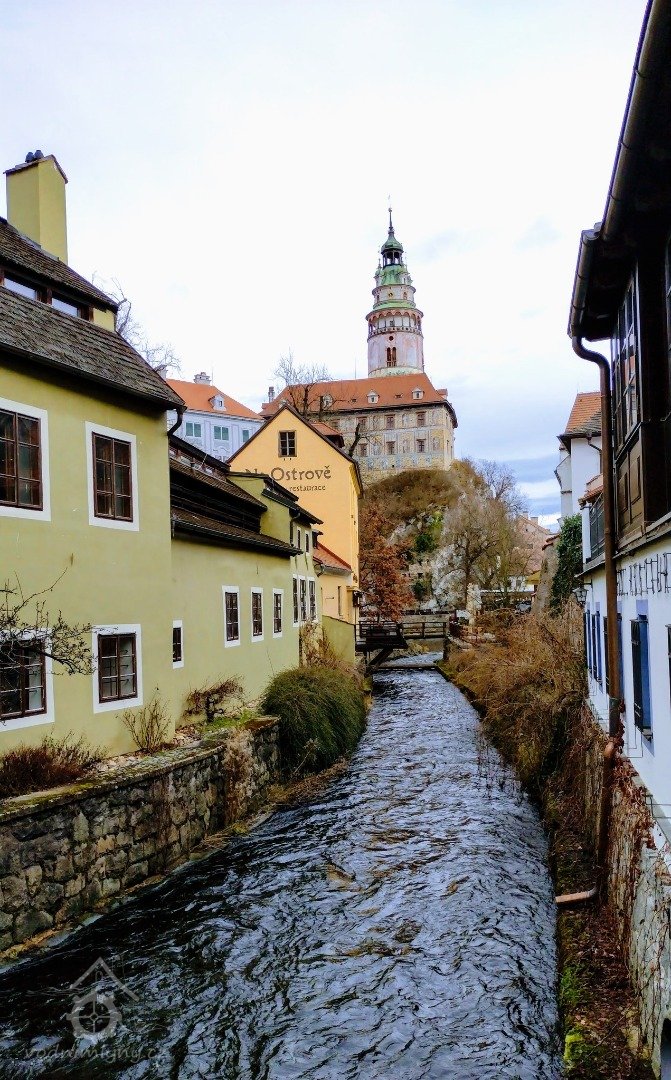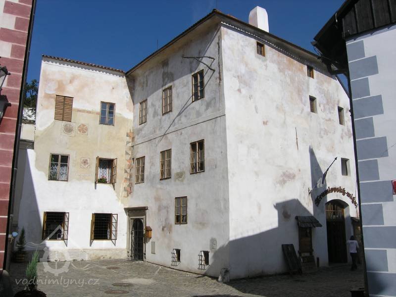 Původně středověký, několikrát přestavovaný mlýn stojí pod zámkem na pravém břehu Vltavy v zátočině u kanálu mezi městem a ostrovem.