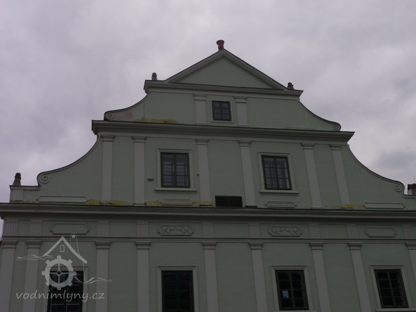 Rozlehlá zděná omítaná budova bývalého mlýna, jednopatrová s dvoudílným štítem v průčelí. Průčelí je čtyřosé, v přízemí bosované, v patře a ve štítě členěné pilastry. Okna příčníková zasazena v líci zdi, v jednoduchých šambranách. Nad profilovanou korunní římsou je dvoudílný volutový štít se dvěma a jedním pravoúhlým oknem, horizontálně členěný římsami, trojúhel. ukončený, s jehlanci po stranách a koulí ve vrcholu. Boční, kolmo napojené křídlo je dvouposchoďové, v přízemí bosované, mezi prvním a druhým patrem horizontálně členěné římsou, okna segmentově zaklenuta. Boční štít vykrajovaný. Sedlová střecha kryta taškami.
