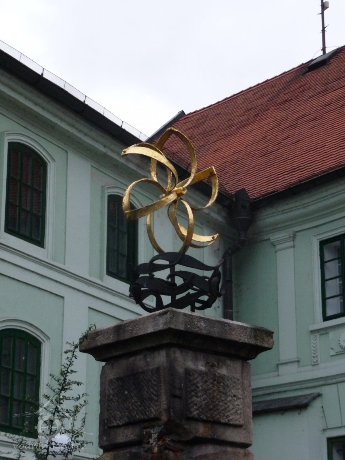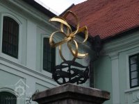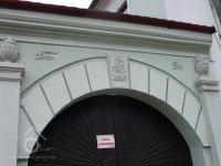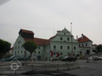 Objekt s mohutným štítem, umístěný při vstupu do města.