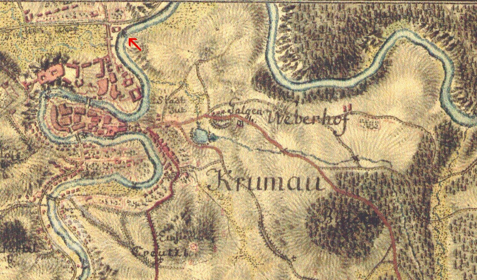 Patrně náhon, okolí mlýna zcela přebudováno.