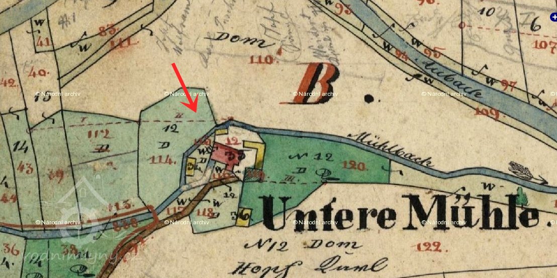 Zaniklý mlýn s pilou ve Vojenském výcvikovém prostoru Hradiště.