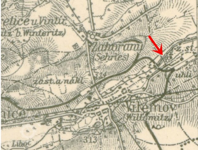 Mlýn se nacházel asi 1,2 km SV od vilémovského náměstí.