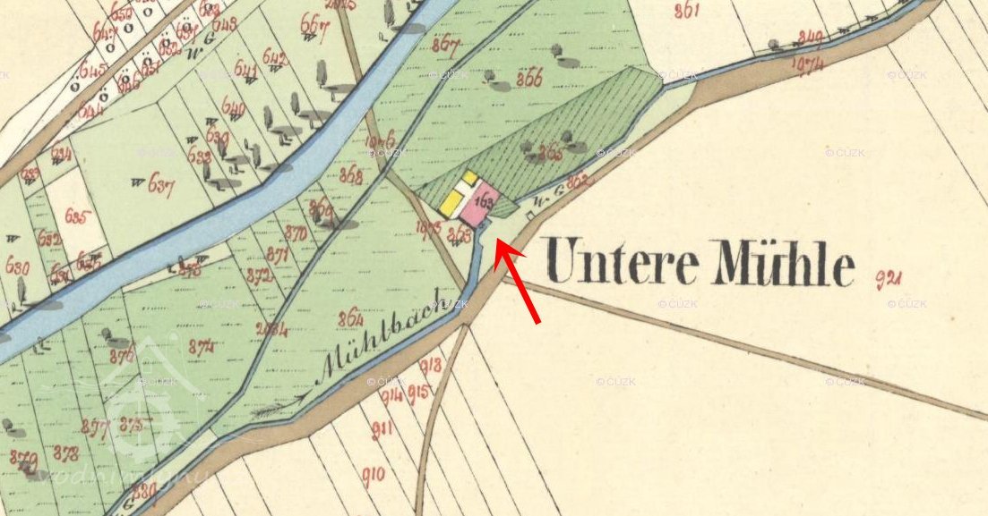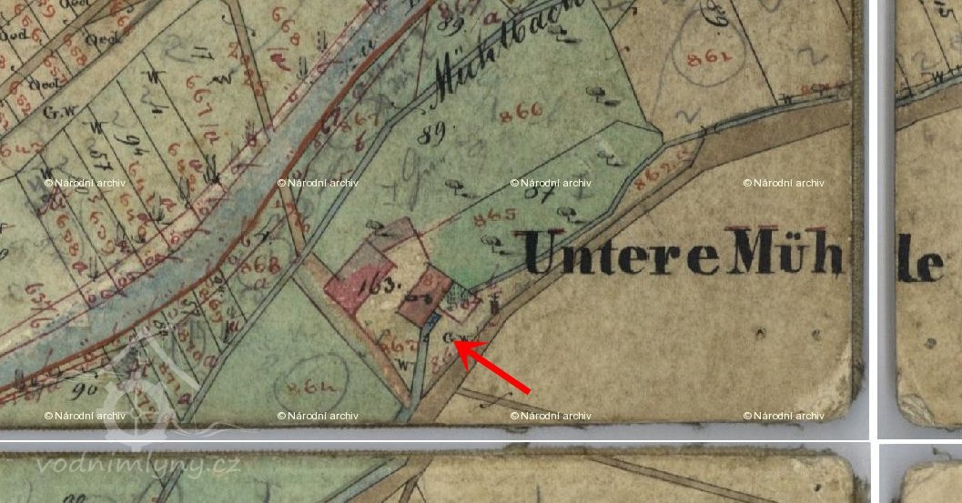 PopisV roce 1930 zde bylo vodní kolo na vrchní vodu o hltnosti 60 l/s, na spádu 3,9 m a výkonu 2,02 HP.