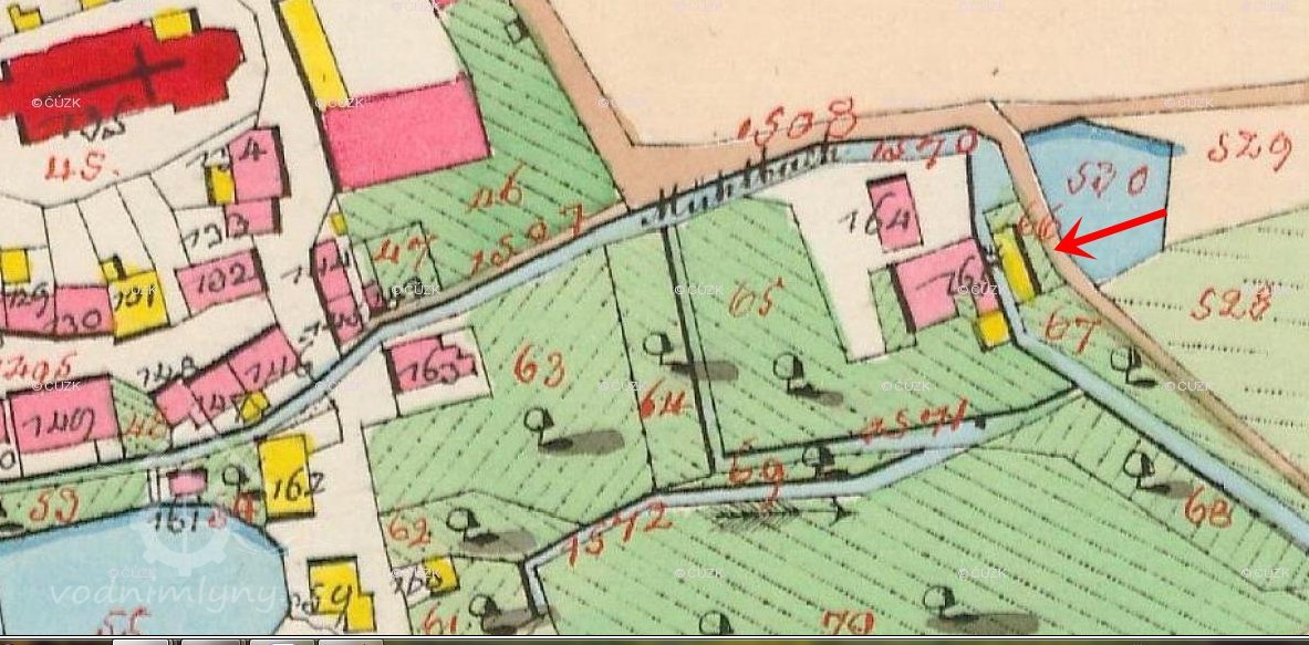 PopisV r. 1930 zde bylo 1 kolo na svrchní vodu, průtok 0,092 m3/s, spád 3,5 m, výkon 2,4 k.