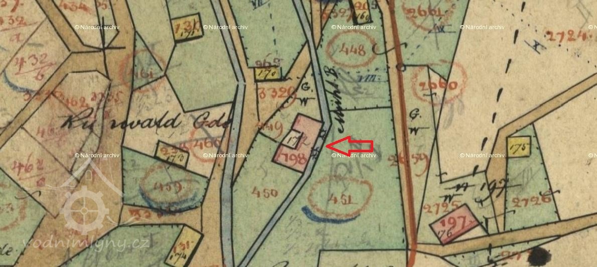 Popis1930: 1 kolo na svrchní vodu, hltnost 0.096 m3/s, spád 5,05 m, výkon 4,2 HP