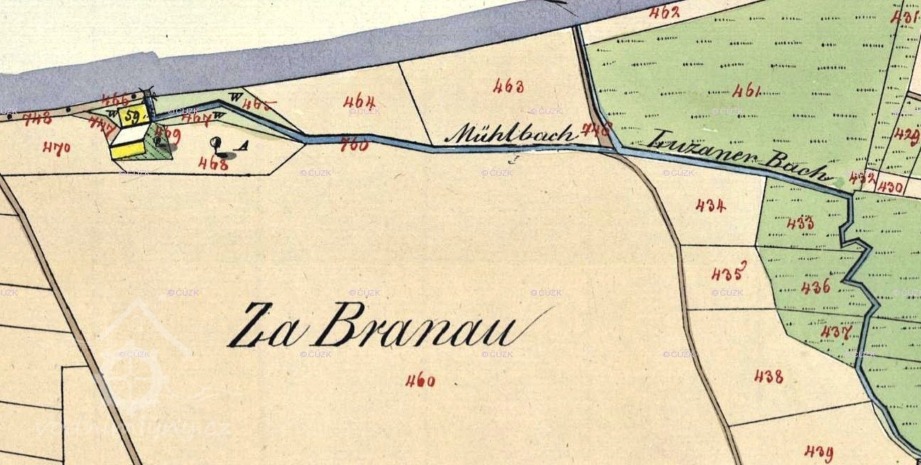 V r. 1921 zde již mlýn nebyl v provozu, objekt vlastnil velkostatek knížete Trautmansdorfa. (RR)