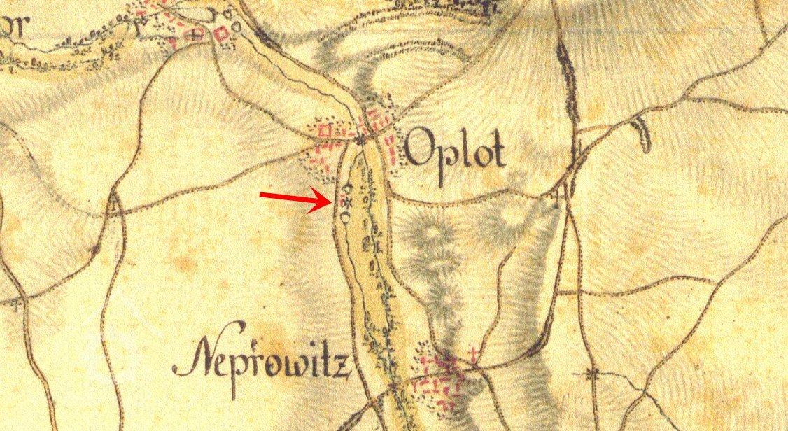 Zaniklý mlýn v obci Oploty u Podbořan.