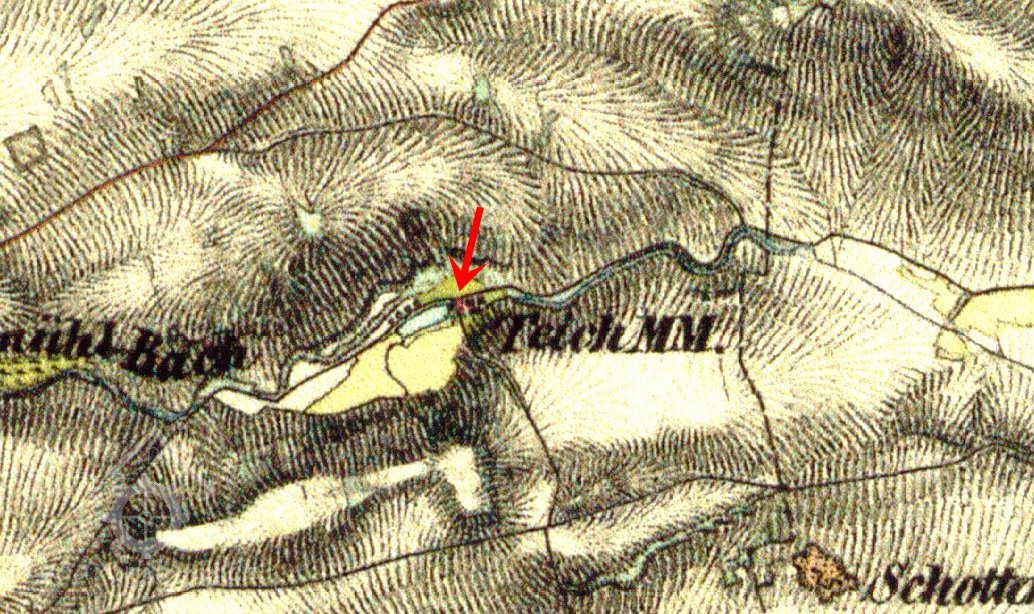 PopisV roce 1930 zde bylo vodní kolo na vrchní vodu o hltnosti 61 l/s, na spádu 5,4 m a výkonu 2,8 HP