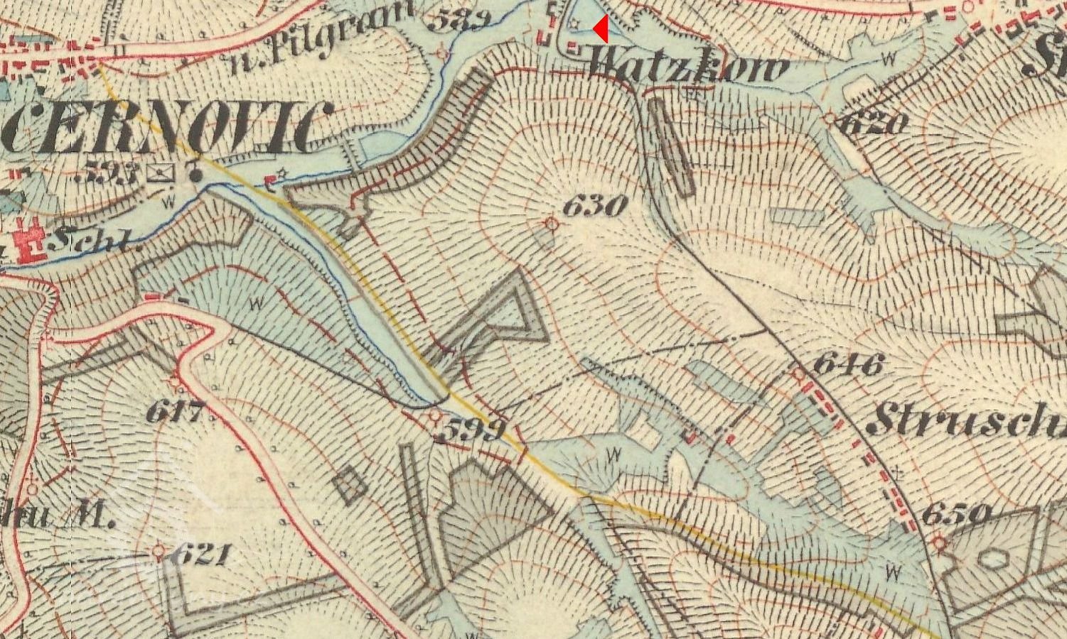 ...Melivo vozí se do šesti mlýnů ležících na dvou potocích. Z těch větší přitéká ode Lhotky a naplňuje nejprve rybník u mlýna na Vackově. Vackov je skupení jedenácti chalup kolem mlýna čtvrt hodiny cesty k východu od Černovic. Mlýn ten patříval před časy k Svatavě, ale r. 1596 k žádosti mlynáře Václava připojen jest od Petra Voka z Rozemberka k Černovicům. Blíže městu pod Vackovem protéká potok rybník u mlýna „Ťápalova“, kdež i pila se nalézá. Na SV. pod Moudrovem vzniká potok druhý, naplňuje rybníky „Hořejší“ a „Dolejší“ při mlýnech týchž jmen, ležících u samého městečka, odtud teče Předměstím a Pršínem, kdež je most kamenný se sochami sv. Jana Nepomuckého a sv. V8clava a při západní straně města běží do obory, kdež se spojuje s potokem prve dotčeným. Část vody shražená žene pod oborou mlýn „Šelichův“ a ještě dpleji naplňuje rybník hluboký s koupadlem u mlýna Louckých. V létech suchých potoky tak málo vody rybníkům dodávají, že jen po přestávkách, vždy až se rybník naplní, mlýti se může... (pep)