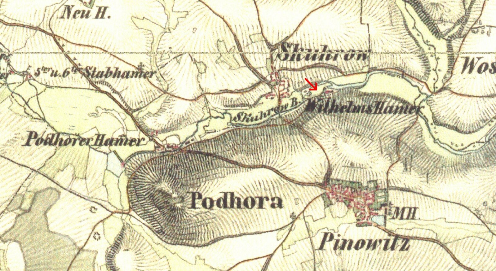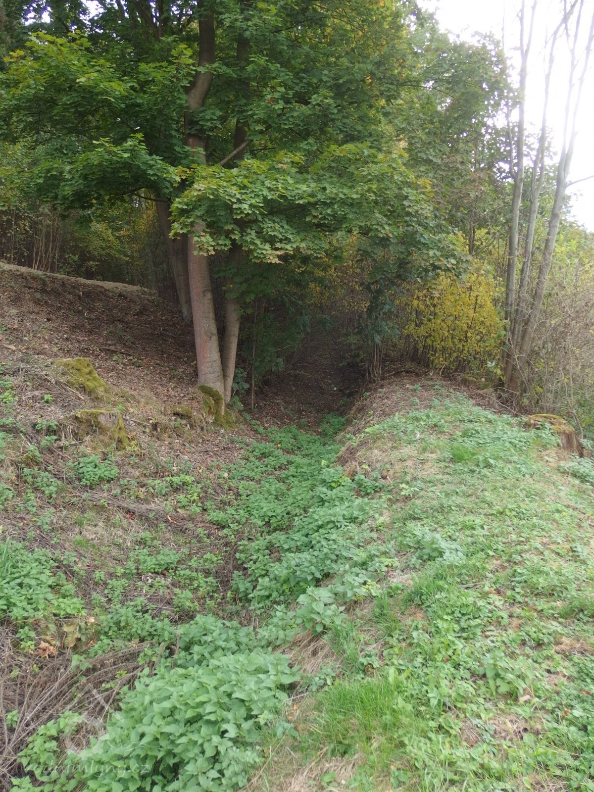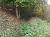 Vodní mlýn přestavěný ze starého hamru. Pěkně dochovaný náhon, ale bez vody.