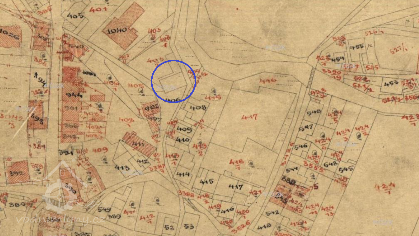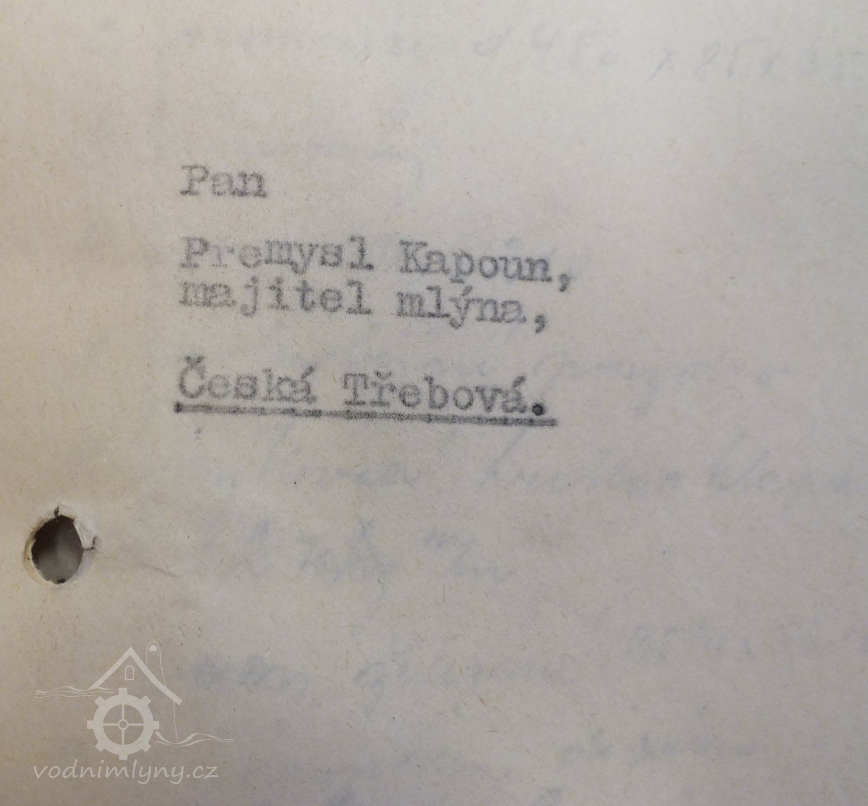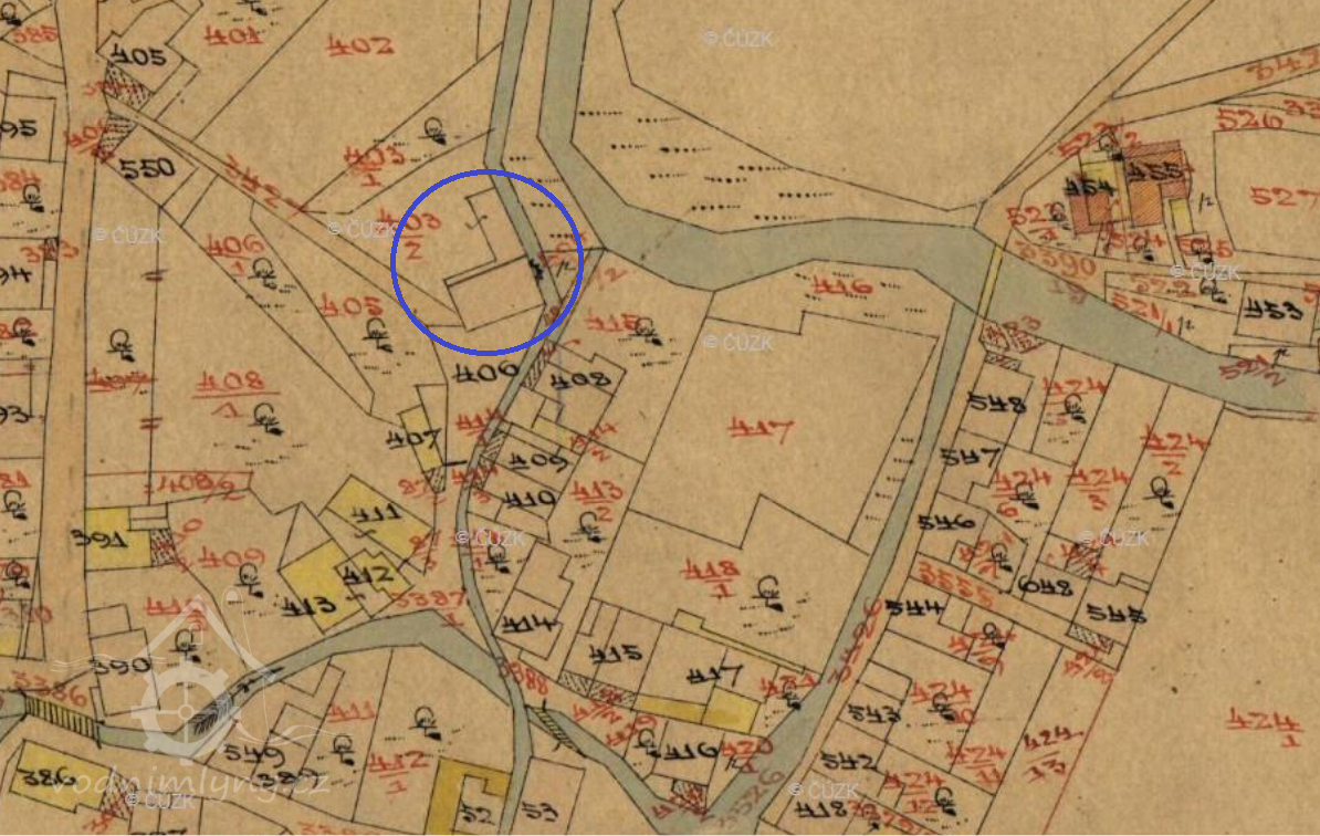 1930: 1 kolo na svrchní vodu, hltnost 0,185 m3/s, spád 2,8 m, výkon 4,5 HP