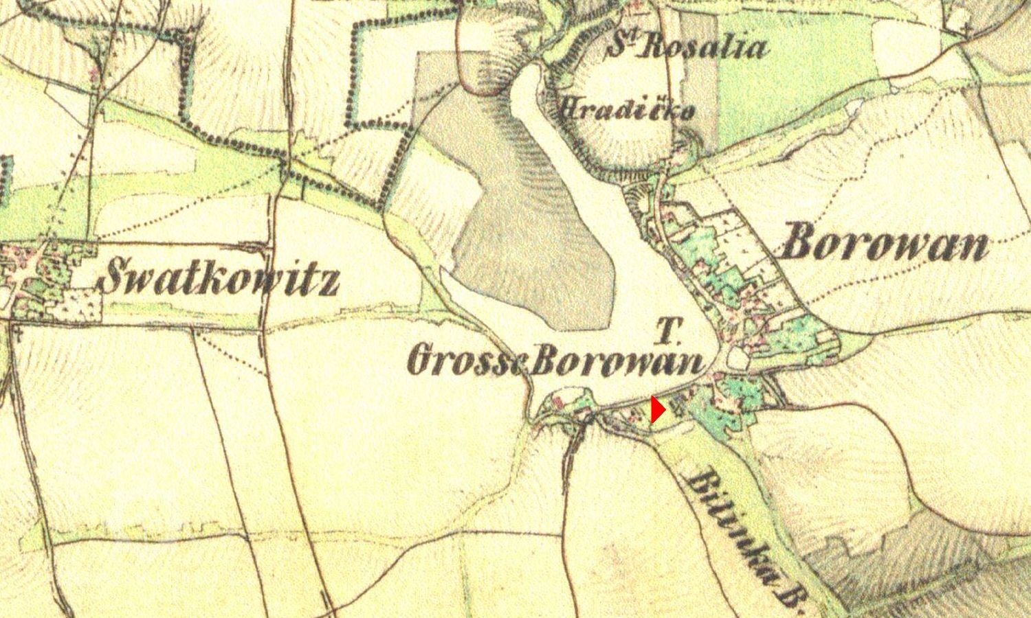Při mlejně borovanským – Václav Kotaška poddaný mlynář, 32 let katolík s manželkou Kateřinou (22), dcerou Dorotou (1) a s bratrem Matějem Mlynářů – pacholík 12 let