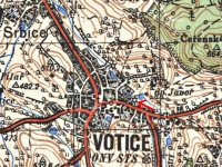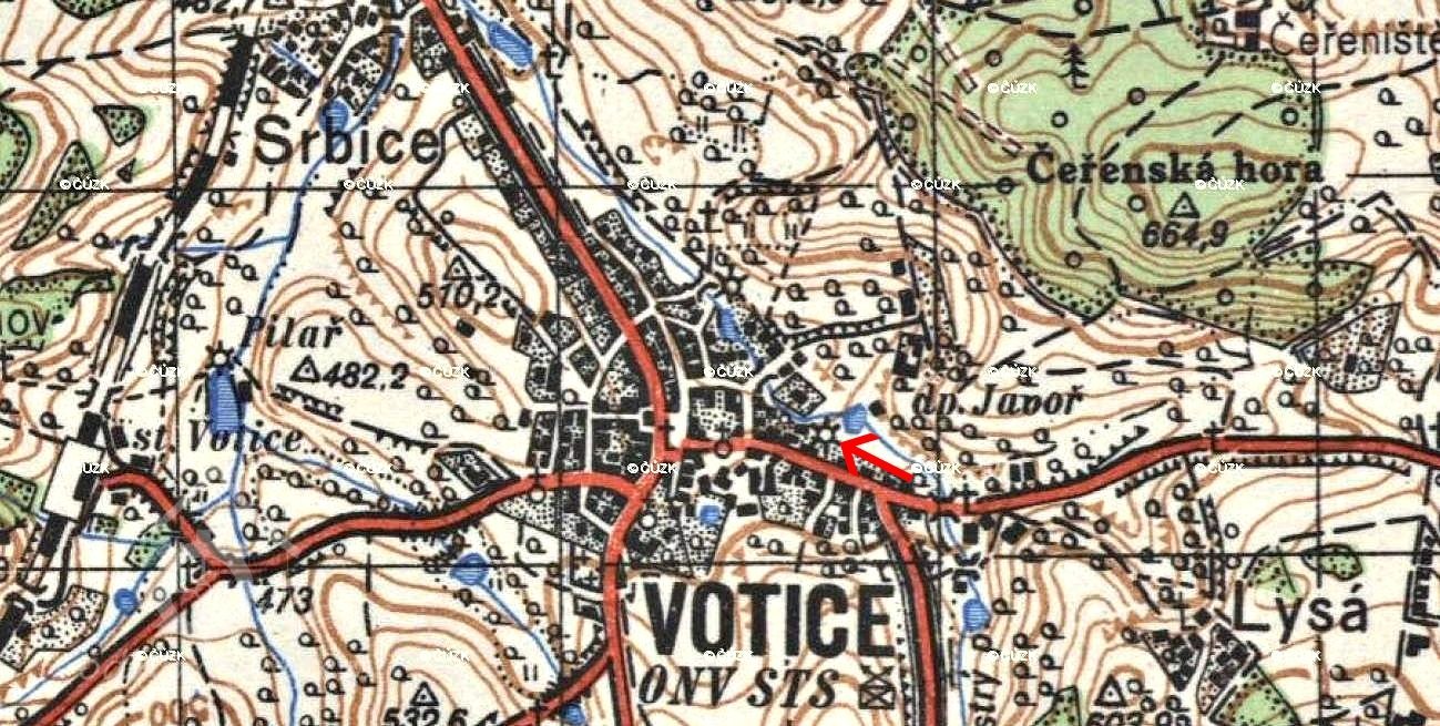 Zaniklý votický mlýn čp. 45; dnes zbyla pouze část mlýnské budovy a na místě vlastního mlýna je dnes parkoviště.
