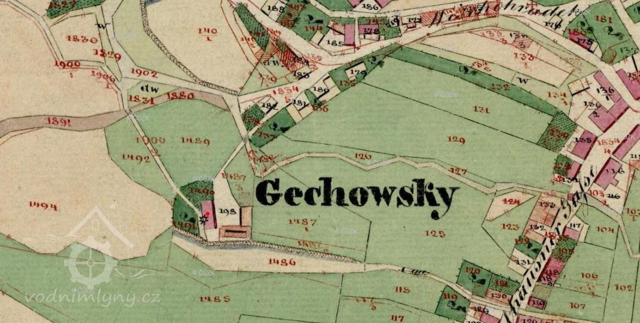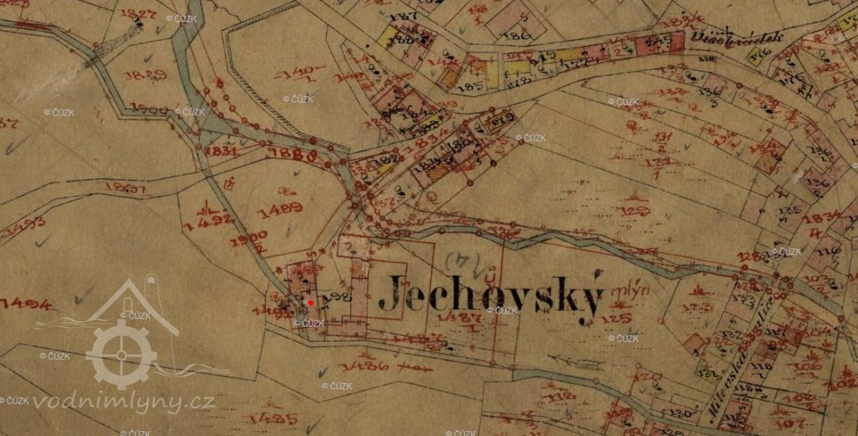 Mlýn Jechův patřící nyní manželům Vilému a Marii Bergerovým. Mlýn ten patřil rodině Sosnově a nazýván odtud mlýnem Sosnovským. Až do r. 1550 patřil mlynáři Šimonu Sosnovi. V pondělí po sv. Lukáši r. 1550 porovnala se pozůstalá vdova Kateřina s dětmi Janem, Václavem a Eliškou o mlýn v ten způsob, že mlýna se ujal syn Jan v 98 kopách míšeňských. Závdavku složiti měl 14 kop při sv. Martině nejprve příštím. O movitosti rozdělili se druzí sourozenci. Za dodržení smlouvy zaručili se Jan Šrámek, Jíra Vopatů, Jan Vavřinec a Jan Holejch. Eliška provdána byla za Jošta, jinak Gedeona. R. 1562 měl Václav Sosna mlýn již úplně vyplacený. R. 1597 hospodařil zde již syn Mikuláš Sosna, neboť tohoto roku vyplatil dědický podíl z téhož mlýna svému bratru Václavovi. Před tím hospodařila zde vdova po Václavu Sosnovi jménam Voršila, neboť r. 1594 přijala 4 kopy míšeňské, ve kterých držela v zástavě louku v „Chotovech“ od Doroty Papouškovy. R. 1596 vyplatila zúplna svého druhého syna Václava, jemuž dala 50 kop míšeňských, jalovici a prase, k tomu polovici pole u Křenovské cesty, které koupila od Jakuba Pachty a „tu dolejší mez až do pole Pachtova“. Téhož roku vyplatila také dceru Anýžku, provdanou za Martina Vladyku. Miluláš Sosna koupil v neděli smrtelnou r. 1601 od Adama Lovčího kus pole „Za cerkví u studánky“ s osením za 40 kop míšeňských. V pondělí po dni sv. Jiří r. 1606 od Anýžky Zelenkové a jejího syna Petra pole „Nade mlejnem Sosnovým i s loukou k tomu poli náležitou“ za 40 kop míšeňských. Ouroku vrchnosti platilo se z nich 5 grošů, desátku faráři 10 snopů. R. 1624 drží mlýn Bartoloměj, neb Bárta Bočan, zvaný po mlýně též Sosna. R. 1635 byl též purkmistram města Jistebnice. Po jeho smrti odevzdal úřad purkmistrovský mlýn Sosnovský v pátek po Hromnicích 6. února jeho synu, Václavu Bočanovi, jinak Sosnovi se vším příslušenstvím, rolemi a lukami a vším právem, což k němu od starodávna přináleželo za sumu hlavní 375 kop míšeňských. Závdavkem položil při zápisu 50 kop. Z toho závdavku přijala Voršila, matka jeho 10 kop, Jiřík Slavíček po Anně 10 kop, Matěj Slaba, vdovec po Juditě 10 kop a bratr Jan Bočan 10 kop. Vejrunky byly po 10 kopách každoročně, počínaje r. 1653. Tehdy byl mlýn velice zpustlý a velikého nákladu potřebný. Pro matku Voršilu vyhraženo bylo zaopatření ve mlýně až do její smrti. Smlouva uzavřena před purkmistrem Janem Lovčím. Avšak Bočan prodal mlýn Sosnovský již 23.2.1666 manželům Janu a Kateřině Jechovým za 370 kop míšeňských. Ještě tehdy byl mlýn velice zpustošený a pobořeny. Byl o 2 složeních. Z nízké symy odhadní vidíme nejlépe jak léta válečná usedlost tuto zpustošila, nebo r. 1623 šacován byl z nařízení vrchnosti skrze Zdenka Lva, hraběte Libštejnského z Kolovrat a Pavla Drahnětického z Veinsenburku, hejtmana panství Chlumeckého a Jistebnického za 900 kop míšeňských. Byly ovšem ve mlýně tehdy 4 krávy, 2 jalovice, 1 klisna, 1 hříbě, 6 kusů dobytka sviňského, pokolení, 1 vůz kovaný, 1 pluh, 1 rádlo a železné brány. Do jedné strany polí osívalo se 8 strychů žita, do strany druhé 9 a půl strycha, do třetí strany též půl strycha, k tomu louka jedna pod 4 vozy sena. R. 1677 byl Jan Jech již mrtev a vejrunky skládala vdova Kateřina Jechova. V posledním pořízení r. 1628 odkázala Kateřina mlýn synu Janu a jeho manželce Polyxeně proti zaplacení podílů sourozencům Václavu, Melicharovi, Mikuláši, Jindřichovi, Janovi, Matějovi a Jakubu po 40 kopách 51 groších. Po smrti jeho r. 1727 přešel mlýn do rukou syna Jana Jecha, který tu hospodařil ještě r. 1770. Po něm drží mlýn opět syn Jan Jech, jenž jest v seznamu cechu mlynářského na rok 1813 jako mistr zapsán.(pep)