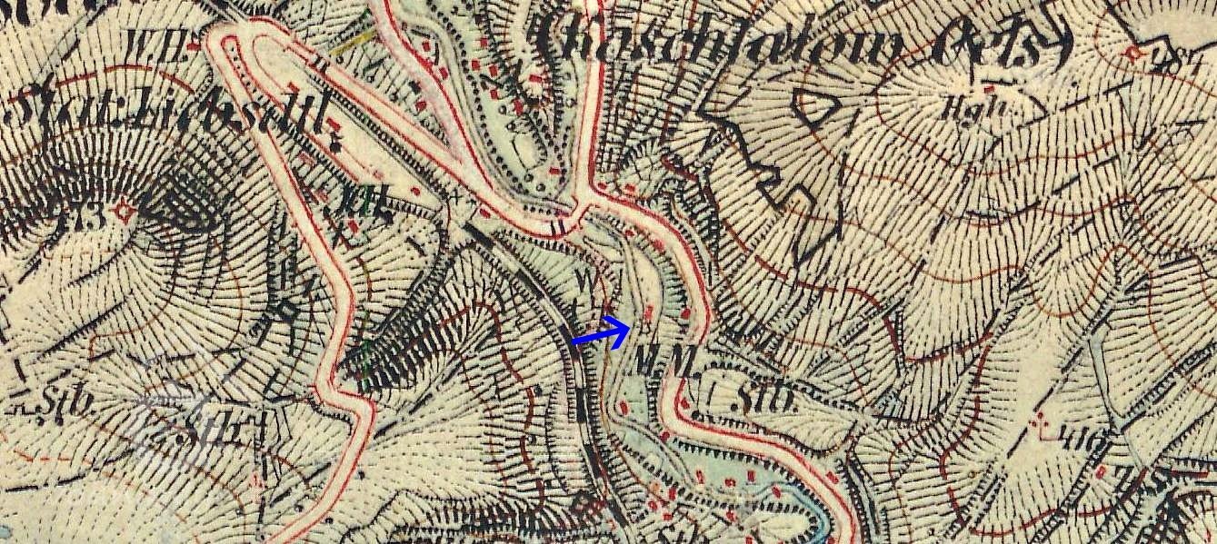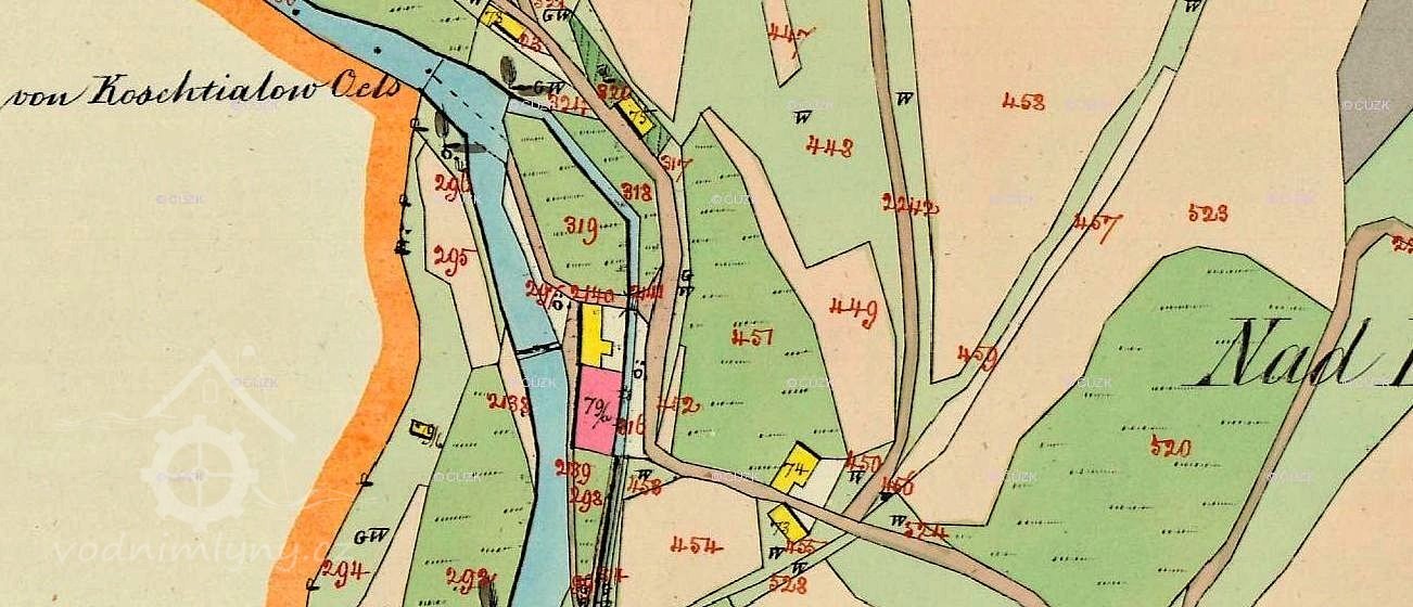 Mlýn se nacházel mezi Košťálovem a Libštátem.