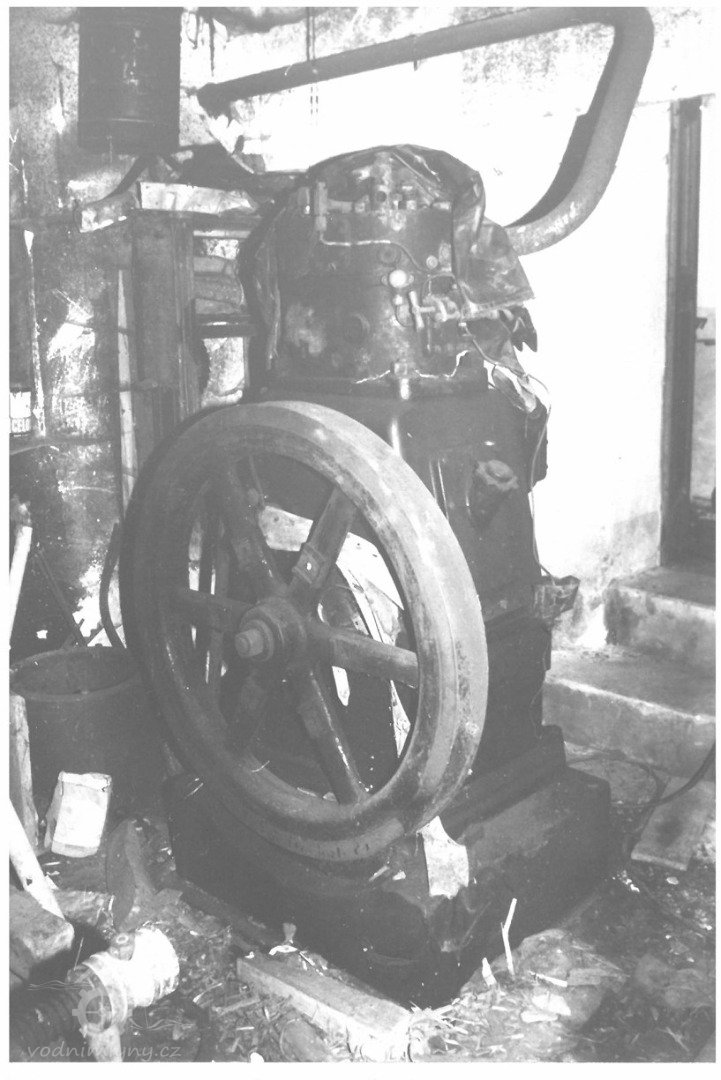 PopisV roce 1930 zde bylo vodní kolo na vrchní vodu o hltnosti 105 l/s, na spádu 4,2 m a výkonu 6,7 HP.