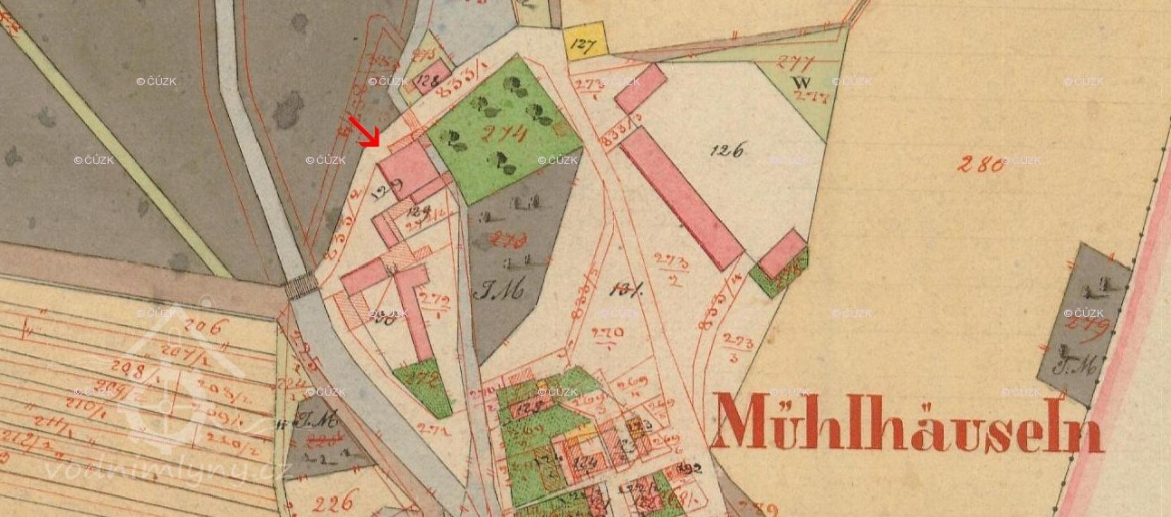 Mimo obec, v lokalitě Zámlýní, Mlýnské domky, Mühlhäuseln
