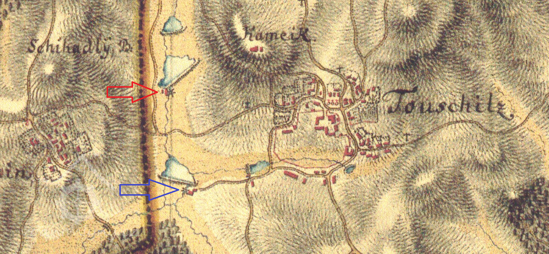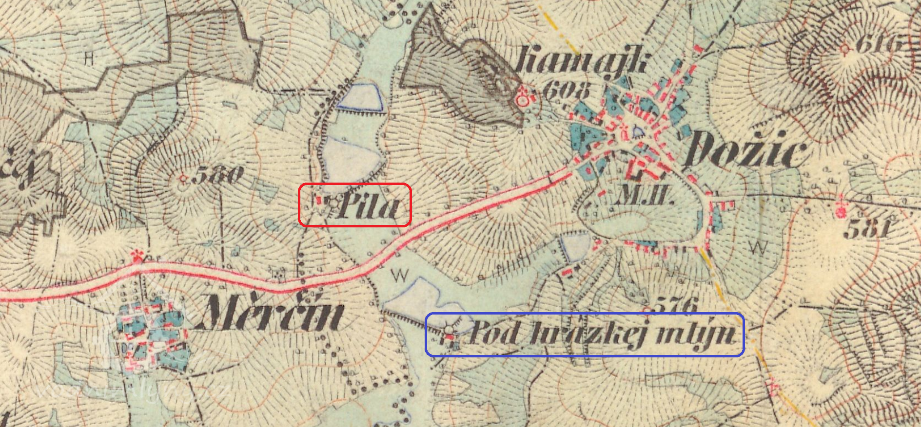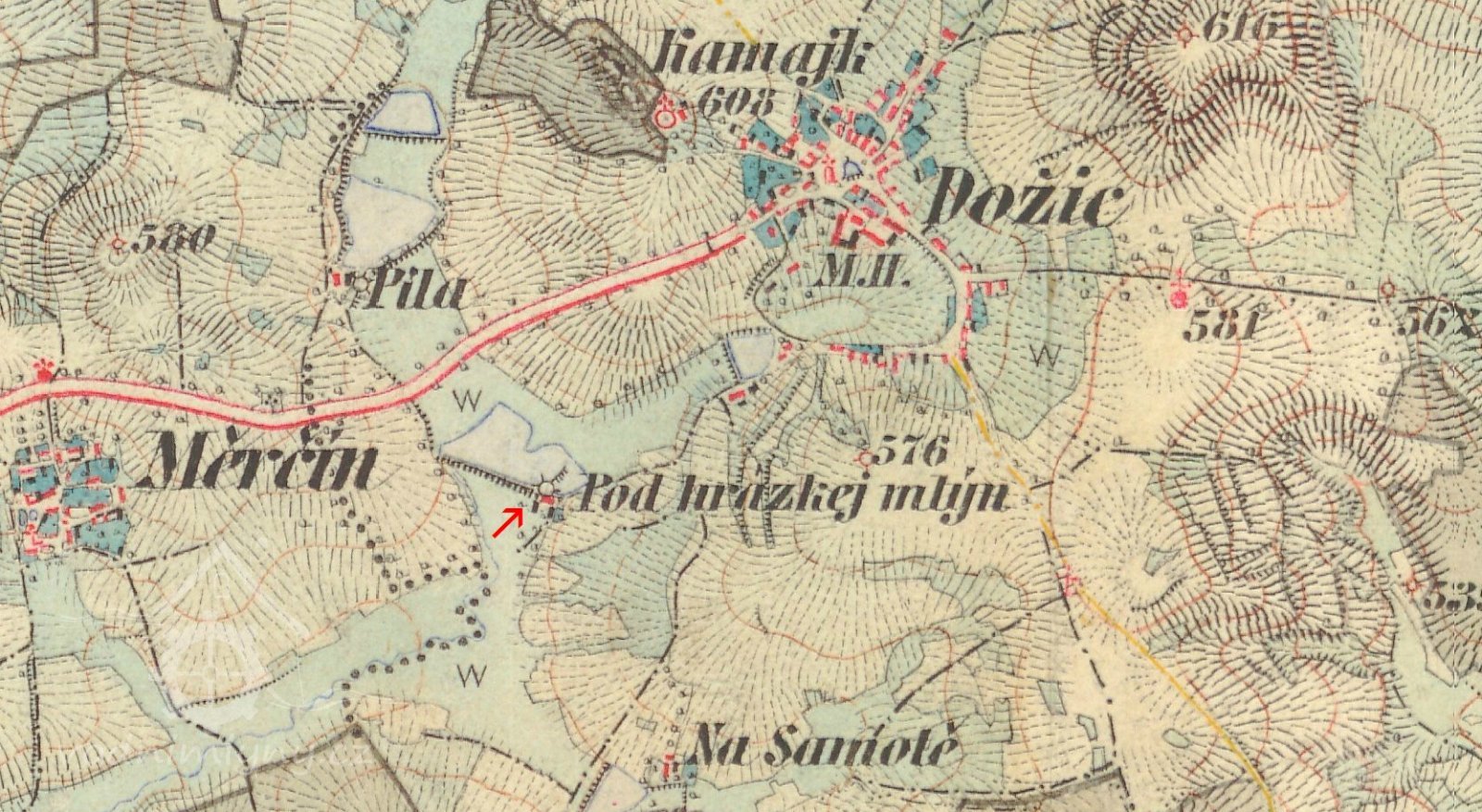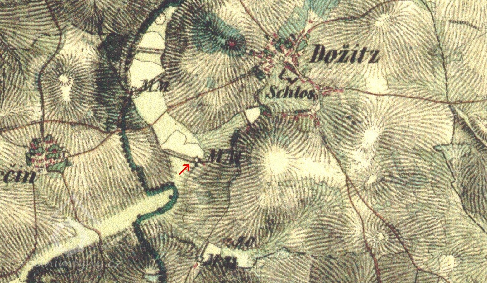 Na mapě II. vojenského mapování je západně od Dožic zakreslen ještě třetí mlýn, jižně od Podhrázského, na katastrálních mapách z přibližně stejné doby však zakreslen není.
