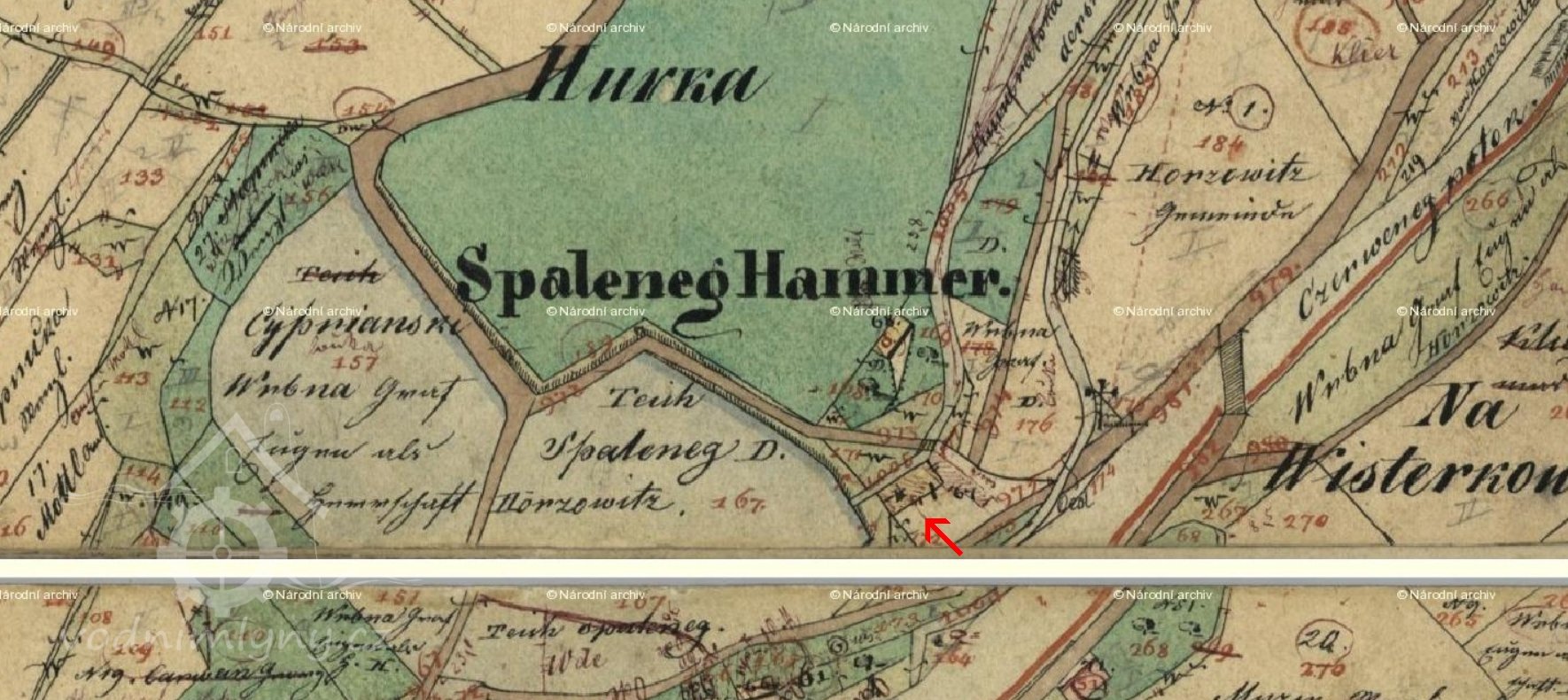 Dle knihy Království české býval hamr na místě tehdejšího mlýnce u železného kříže Na Vystrkově.