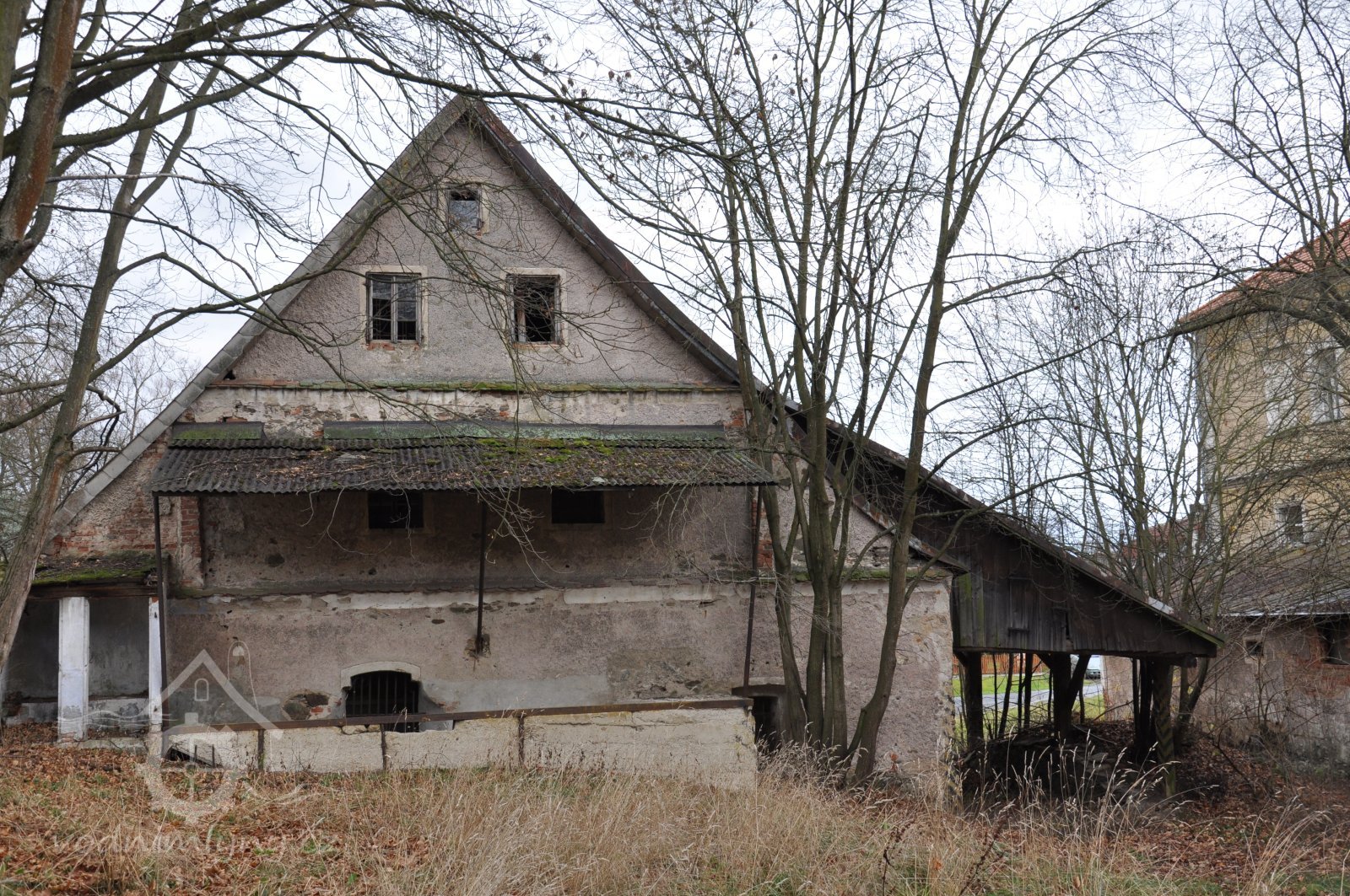 Bez větších přestaveb dochovaný a chátrající mlýn na severním okraji obce