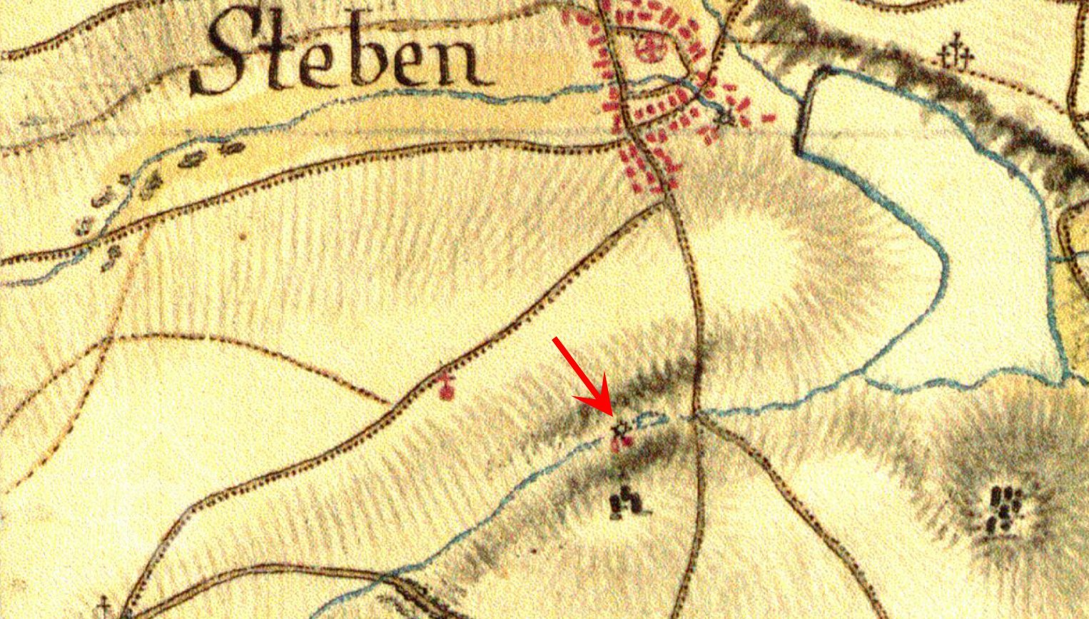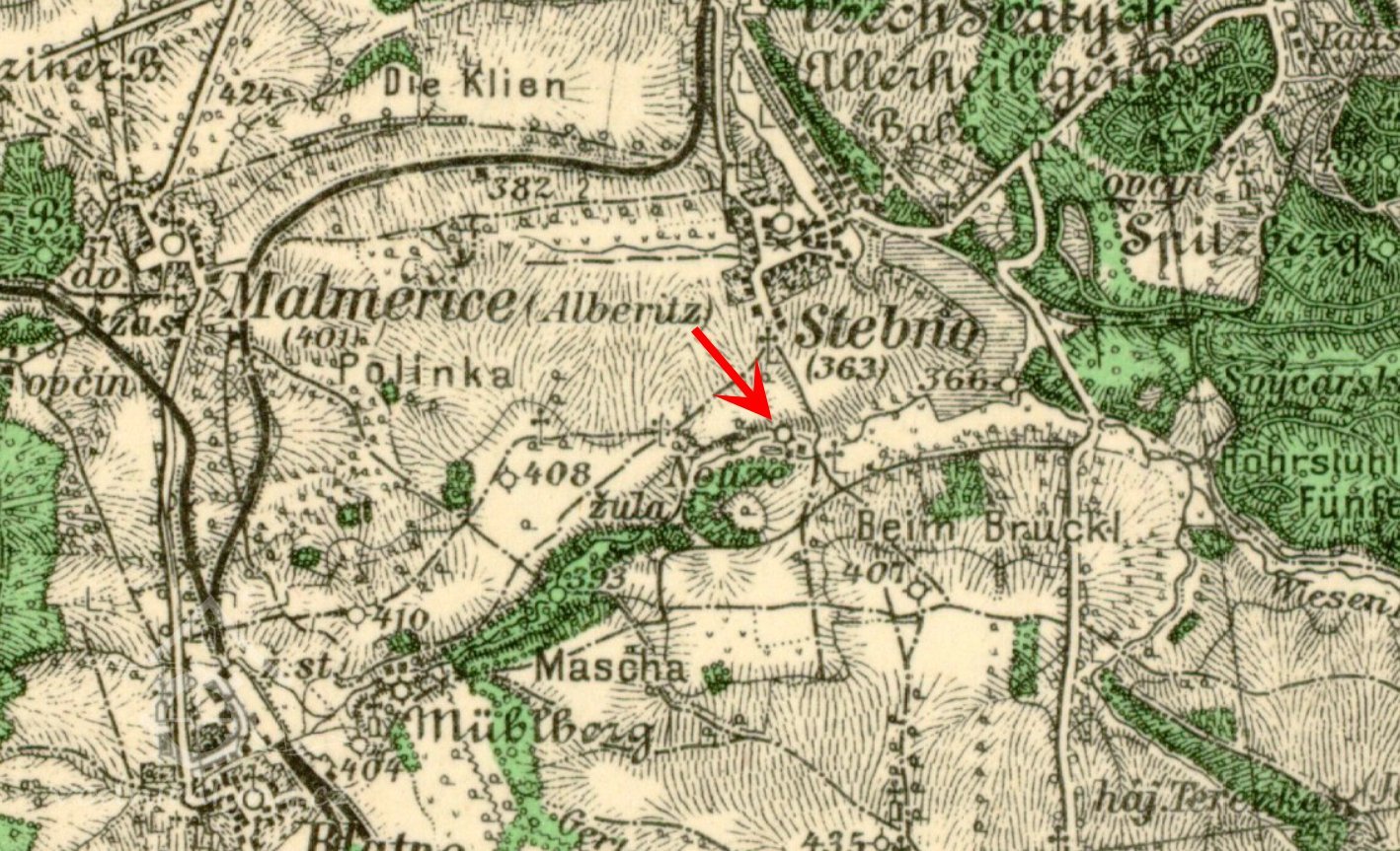 Mlýn se nacházel nedaleko obce Stebno, asi 890 m jižně, u Podvineckého potoka.