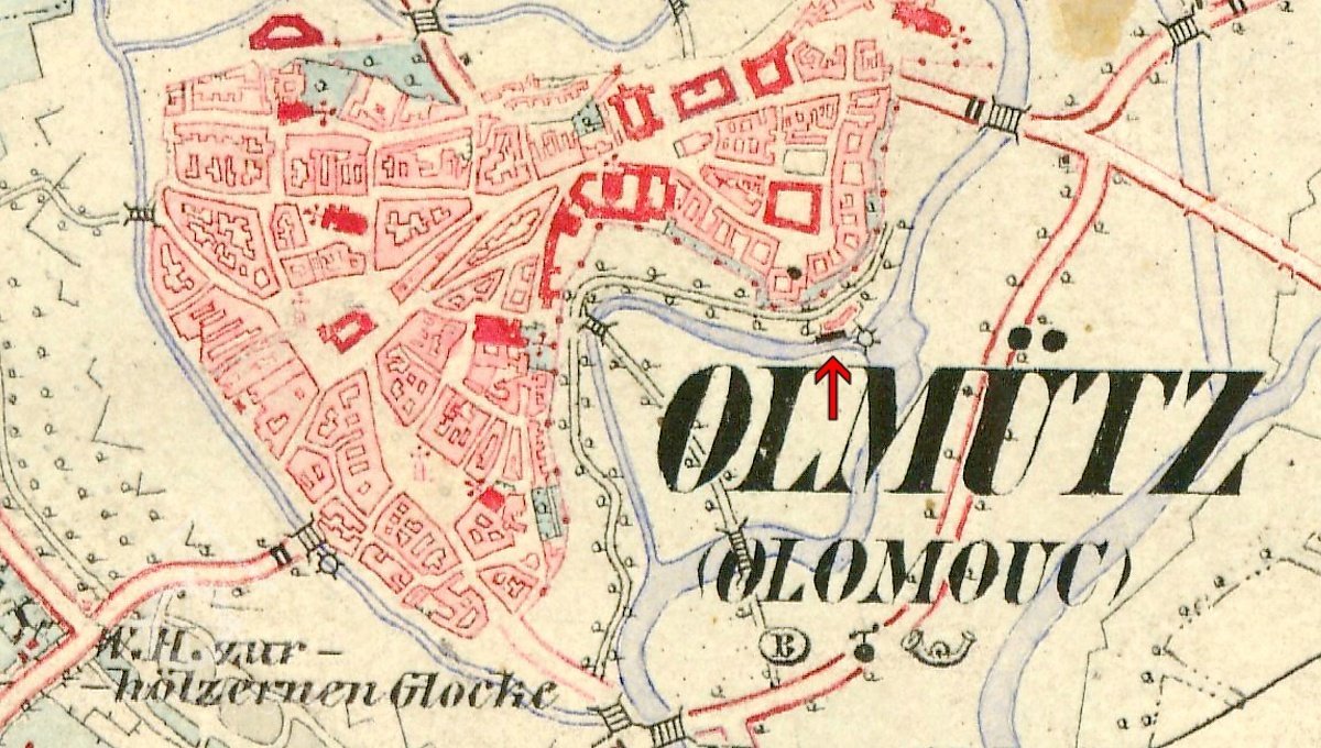 cca 100 m jihovýchodně pod budovou filozofické fakulty