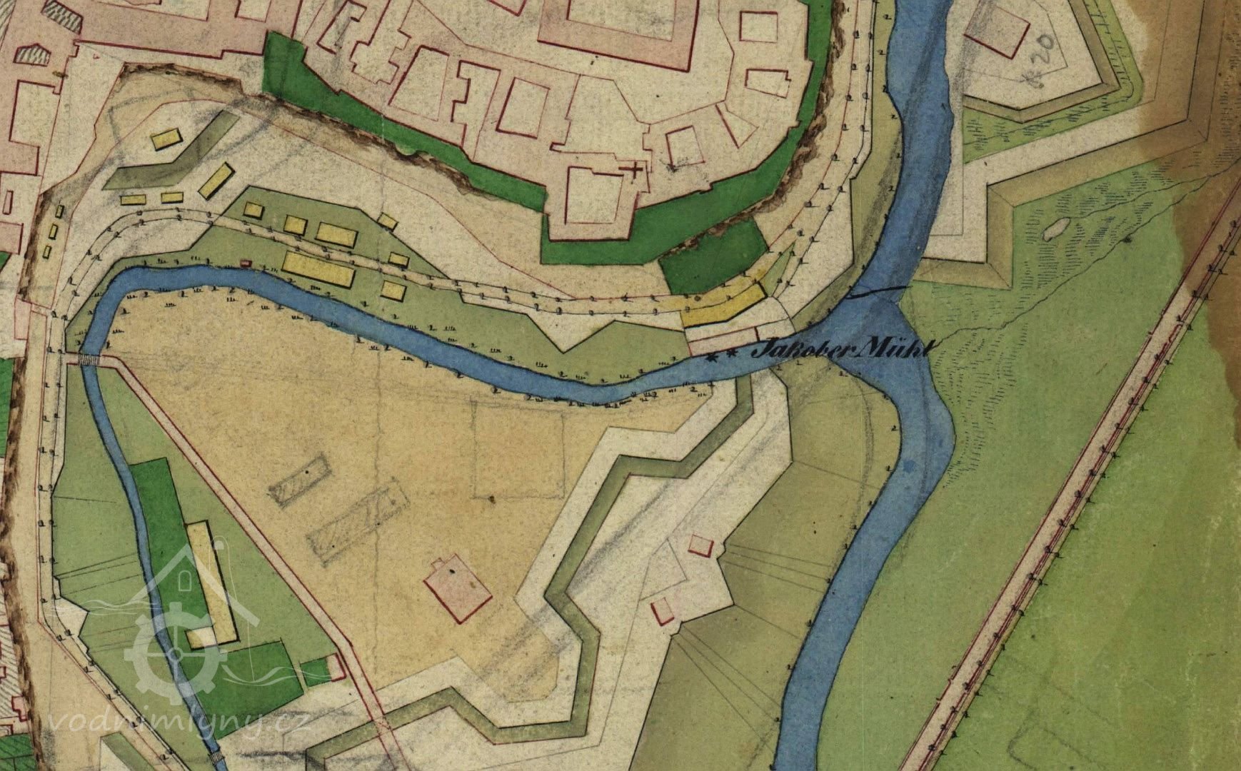 Veškerá zástavba z obce Závodí, která se nacházela na jižní straně městských hradeb, byla v letech 1742-1757 odstraněna, jen Jakubský mlýn zůstal. Ale i ten byl nakonec zničen při pruském obléhání Olomouce, po odchodu Prusů byl opět obnoven. V r. 1760 je zde doložen mlynář Michal Kobert a po jeho smrti v r. 1776 mlýn převzala Kobertova žena Anna za činži 402 zl. Anna Kobertová však mlýn ještě v témže roce přenechala Františku Bönischovi za 2000 zl. 4.3.1799 došlo k narovnání mezi olomouckou kapitulou a Františkem Bönischem, jímž se "mlynář vzdává nároku na všechny povinnosti úkonů při stavbě jezu, splavu a čištění mlýnského potoka ze strany kapituly, za což mu kapitula snižuje roční nájemné až na 100 zl. a pro současnou stavbu jezu přenechává 100 dubových kmenů". Další nájemce převzal od Bönischa mlýn v r. 1803 a byl jím Antonín Heger. Po něm přichází kolem r. 1830 starší přísežný olomouckého mlynářského cechu František Hoffmann.
