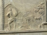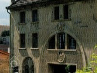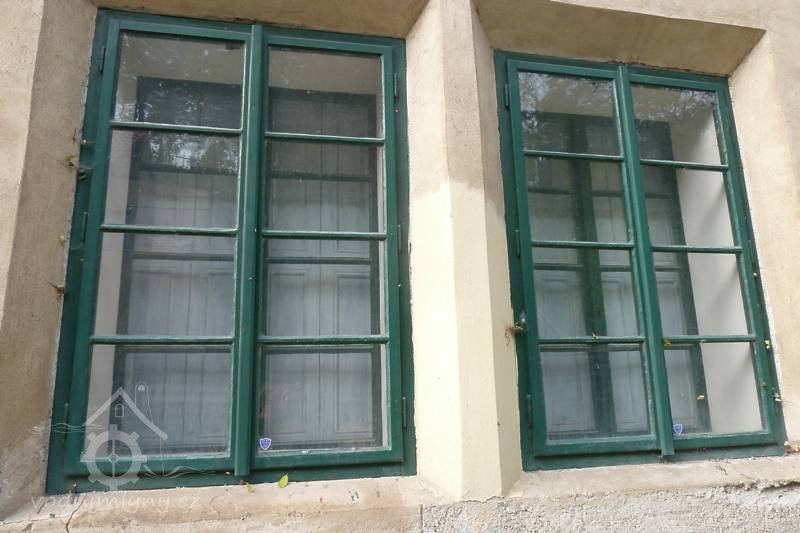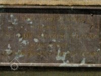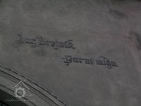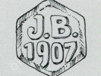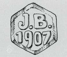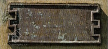 Vodní cejch v podobě desky s nápisem JB 1907 (Jaroslav Brejník) na zdi obytného stavení, druhá na pískovcové skále při silnici do Kralup