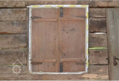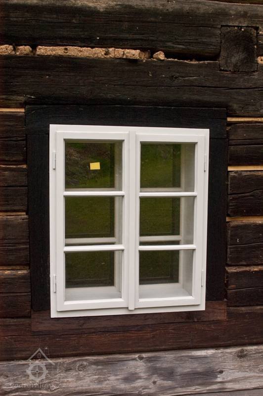 Jedná se o jednoduché dřevěné dvoukřídlé šestitabulkové okno osazené za lícem a s vnitřní okenicí. Ani u jednoho okenního otvoru se „nedochovala“ vnější okna, s největší pravděpodobností zde ani nebyla, mohlo se jednat pouze o sezóně obývanou obytnou místnost, či se do líce osazovaly sezónní výplně. Tesařský rám okenního otvoru vsazený do roubené stěny je z vnitřní a z bočních str. obložen fošnami. Do drážky vytvořené obložením tesařského rámu vsazen rám okna. Rám okenice připevněn k vnitřnímu fošnovému obložení tesařského rámu okenního otvoru. Okenice dvoukřídlé, svlakové s venkovními vodorovnými kovanými závěsy osazenými na dvoudílný kovaný hák se zaoblenou opěrkou jištěnou ve spodní části kovaným hřebem. Svlaky zapuštěny do lichoběžníkové drážky, volné podélné hrany okoseny, „čela“ svlaků zaoblená. Styk křídel okenice oboustranně krytý klapačkou s profilací.
