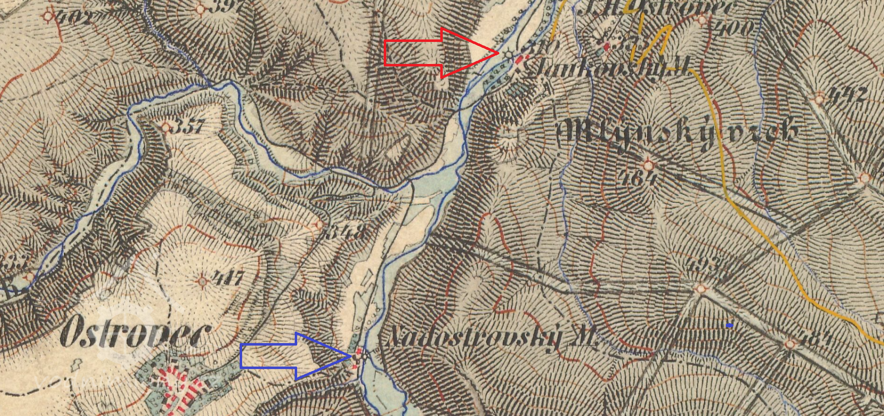 1610 Hořejší i Dolejší mlýn pod Ostrovcem pronajaty Jakubovi Slapničkovi ze vsi Hradiště, z Hořejšího mlýna nájem 30 strychů žita a vykrmit 1 vepře