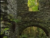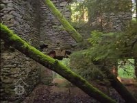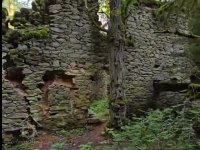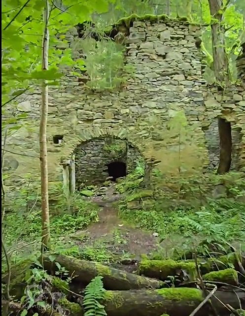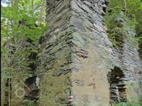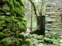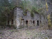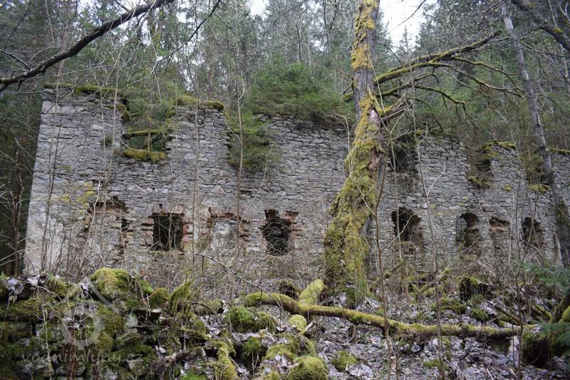 Mohutné zříceniny budov sirkárny, mlýna, pily a nedaleké elektrárny.