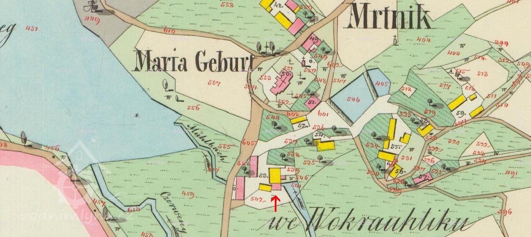 1653 Berní rula: v Mrtníku mlýn neuveden, zapsán zde ale Albrecht Mlynář