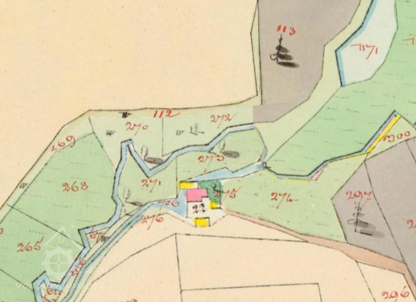 Popis1930: 1 kolo na svrchní vodu, hltnost 0,11 m3/s, spád 3,7 m, výkon 3,5 HP