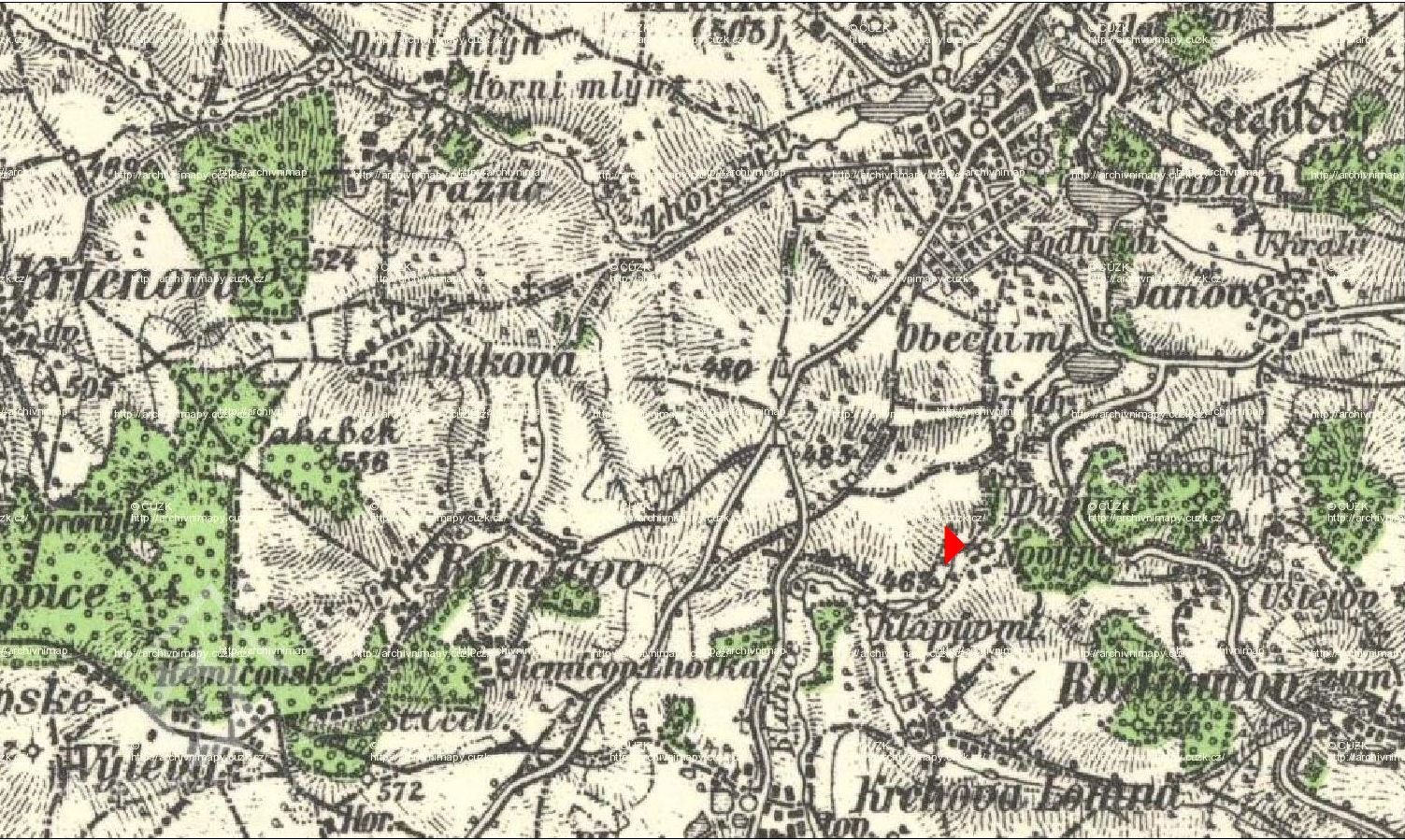 Severně od obce Krchova Lomná