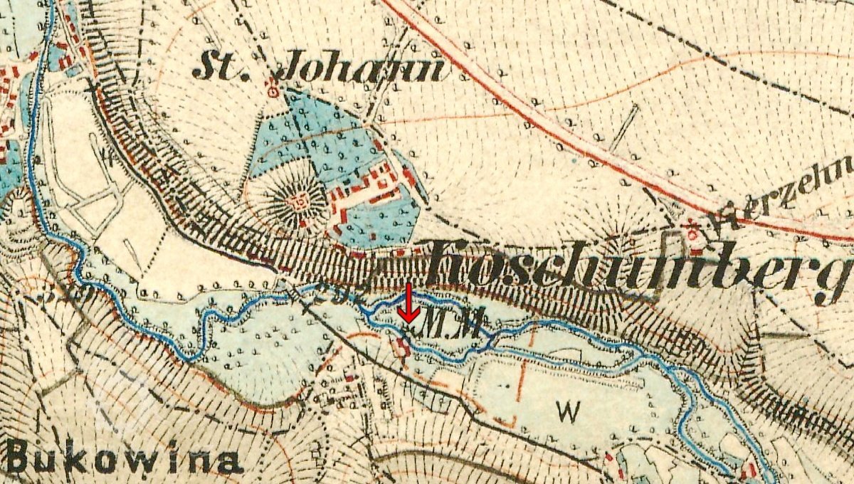V roce 1930 je zde uváděn v seznamu vodních děl mlynář Jan Sháněl, mlýn. V témže roce nahradila dvě vodní kola mlýna turbína.
