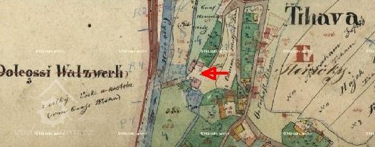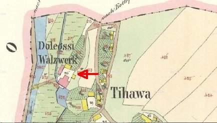 Na mapě II. vojenského mapování, indikační skice a císařských povinných otiscích je objekt označen jako Dolejssi Walzverk. Tomu odpovídá i velká dvoupatrová budova z neomítnutých šedých cihel. V roce 1930 byl v objektu mlýn. (HŠ)