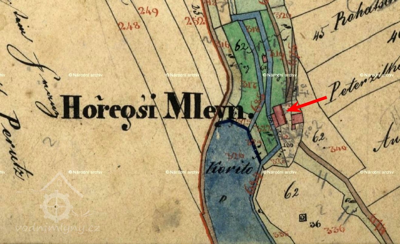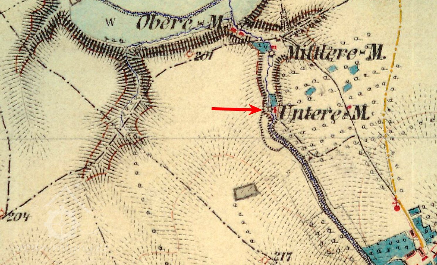 Na mapě 3. vojenského mapování je mlýn chybně označen jako Untere (dolní).
