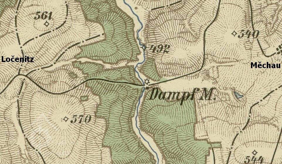 Mlýn na hranici katastru Ločenic u silnice Ločenice-Něchov na Pašinovickém potoce. Mimo starých map o něm nemám zatím žádné další informace (jako Dampf M.). Dodnes se v okolí dochovaly místní názvy Parný, Parný les. Mlýn vznikl až zřejmě kolem r. 1880 (poprvé zřejmě na III. voj. mapování). Bohužel je dnes značně stavebně znehodnocen, ale lze vyčíst původní dispozici.