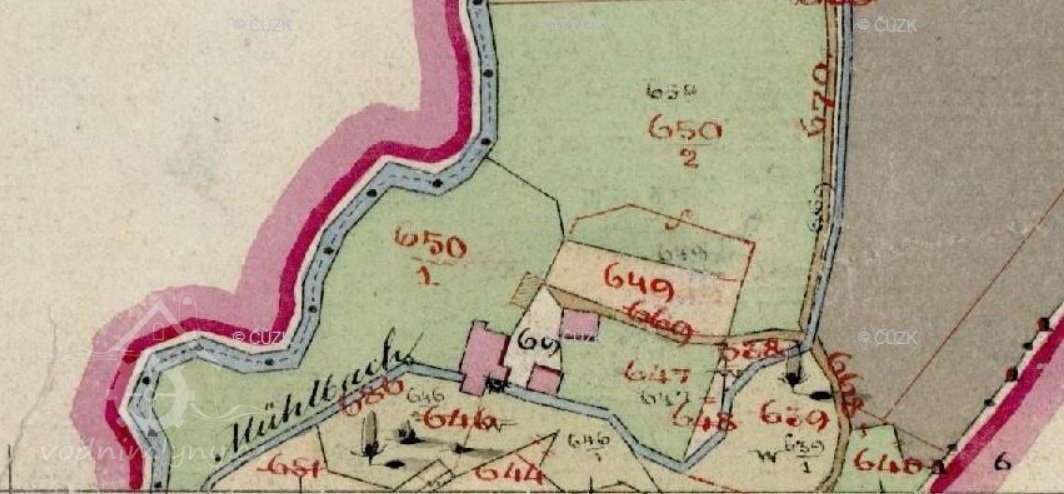Mlýn je zakreslen při II. vojenském mapování, na indikační skice i povinném císařském otisku z r. 1840.