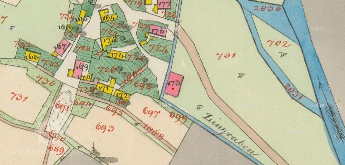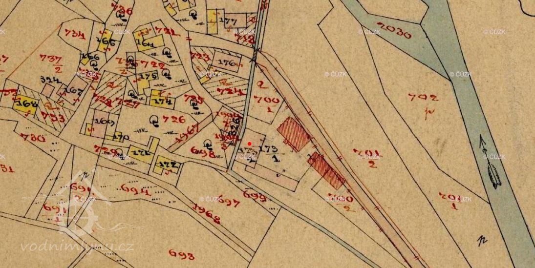 Mlýn měl v roce 1908 dvě vodní kola na svrchní vodu.