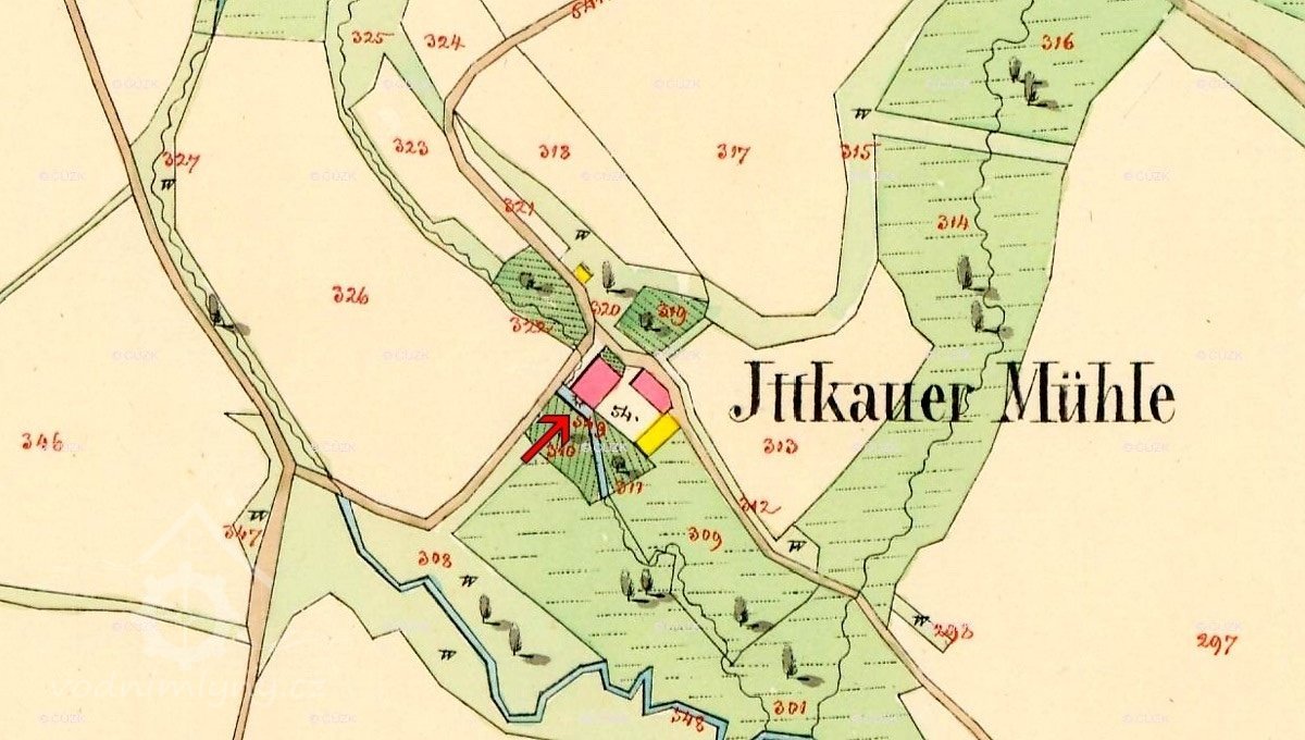 1651 Soupis poddaných podle víry - mlejn při dvoře jitkovským: mlynář Martin (26 let), katolík, manželka Marjána (17), nekatolička s nadějí na obrácení, oba svobodníci, dcera Judita (3), syn Jan (2), oba poddaní