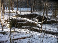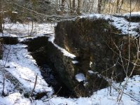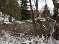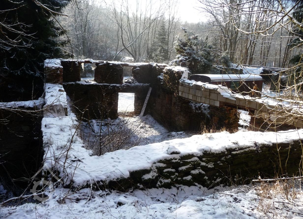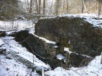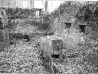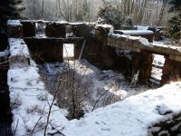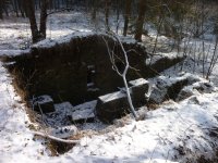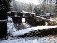 pila z objektu nejlépe zachována, budova z lomového kamene, uvnitř novější betonové fundamenty pro uchycení katru