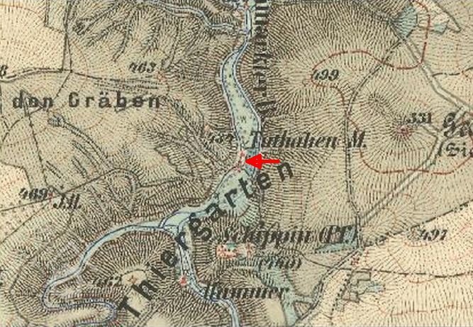 1839 náhon veden podzemním kanálem, který vycházel na povrch až za silnicí.