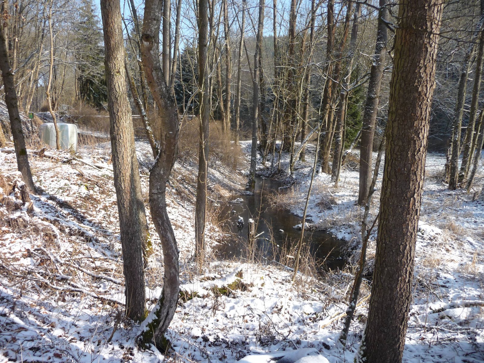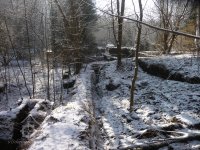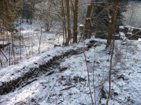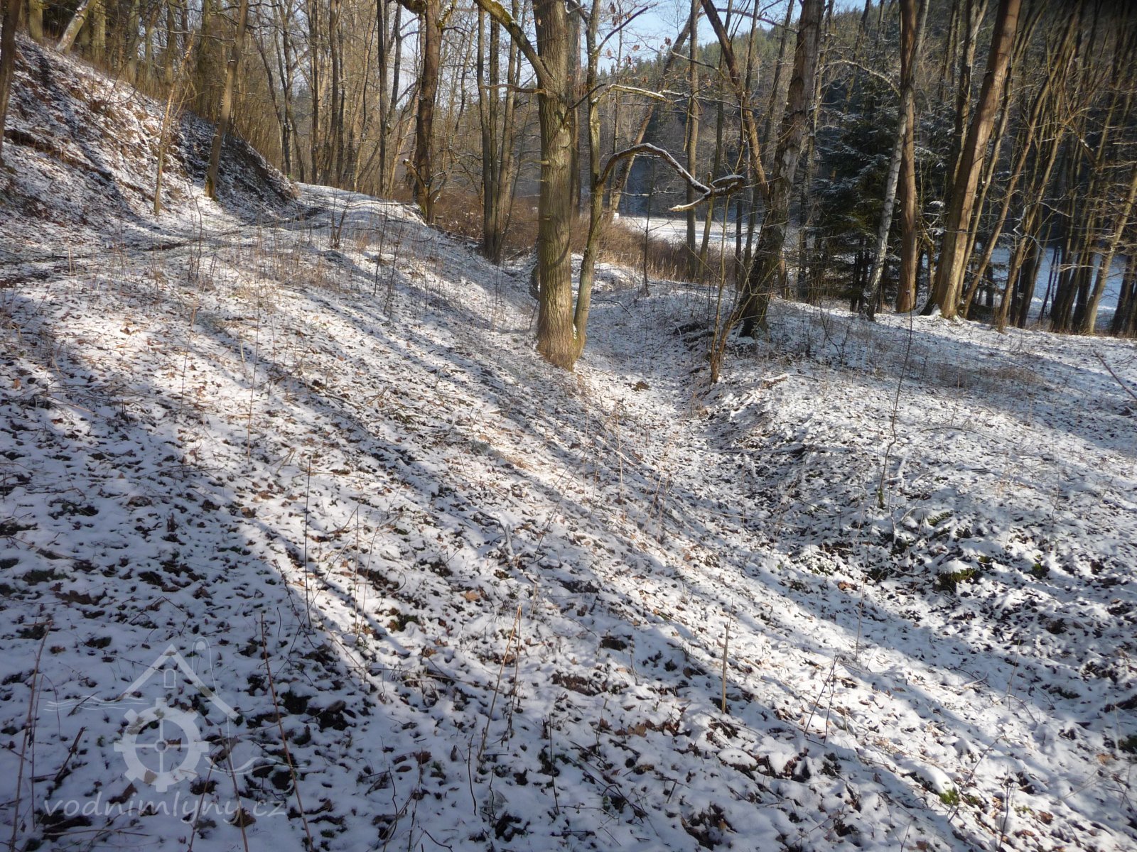 Nad mlýnem se od náhonu odděloval jalový odtok s přepadem. V terénu je patrné oddělení náhonu k menšímu objektu pily a náhon k většímu objektu je veden podél zdi menší budovy.