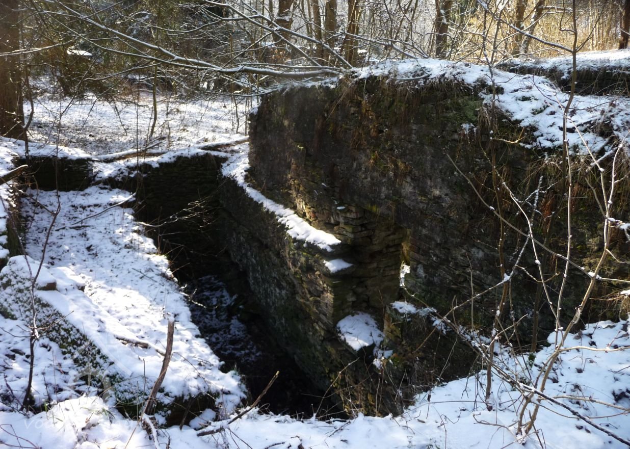 Zdivo mlýna, k němuž přiléhá lednice s klenutým kanálem, dochováno do výše 1. patra