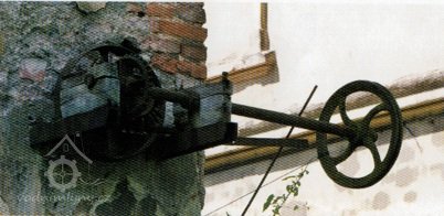 Na sloupcích u bývalého vjezdu do mlýna jsou umístěny 2 mlecí kameny.