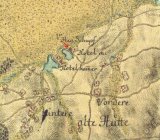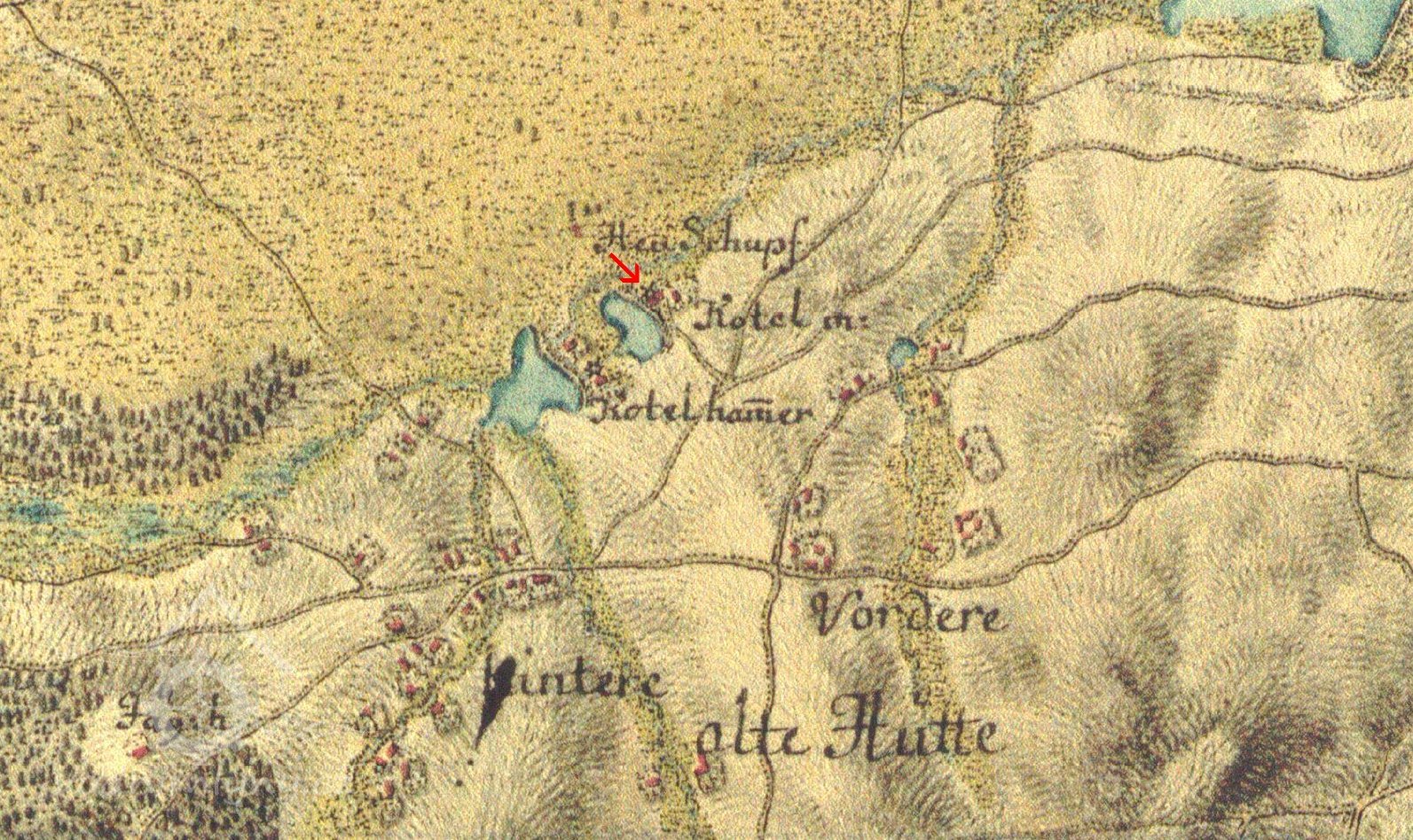 Při staré cestě od Hutí k Věšínu cca 750m od křižovatky u hospody.