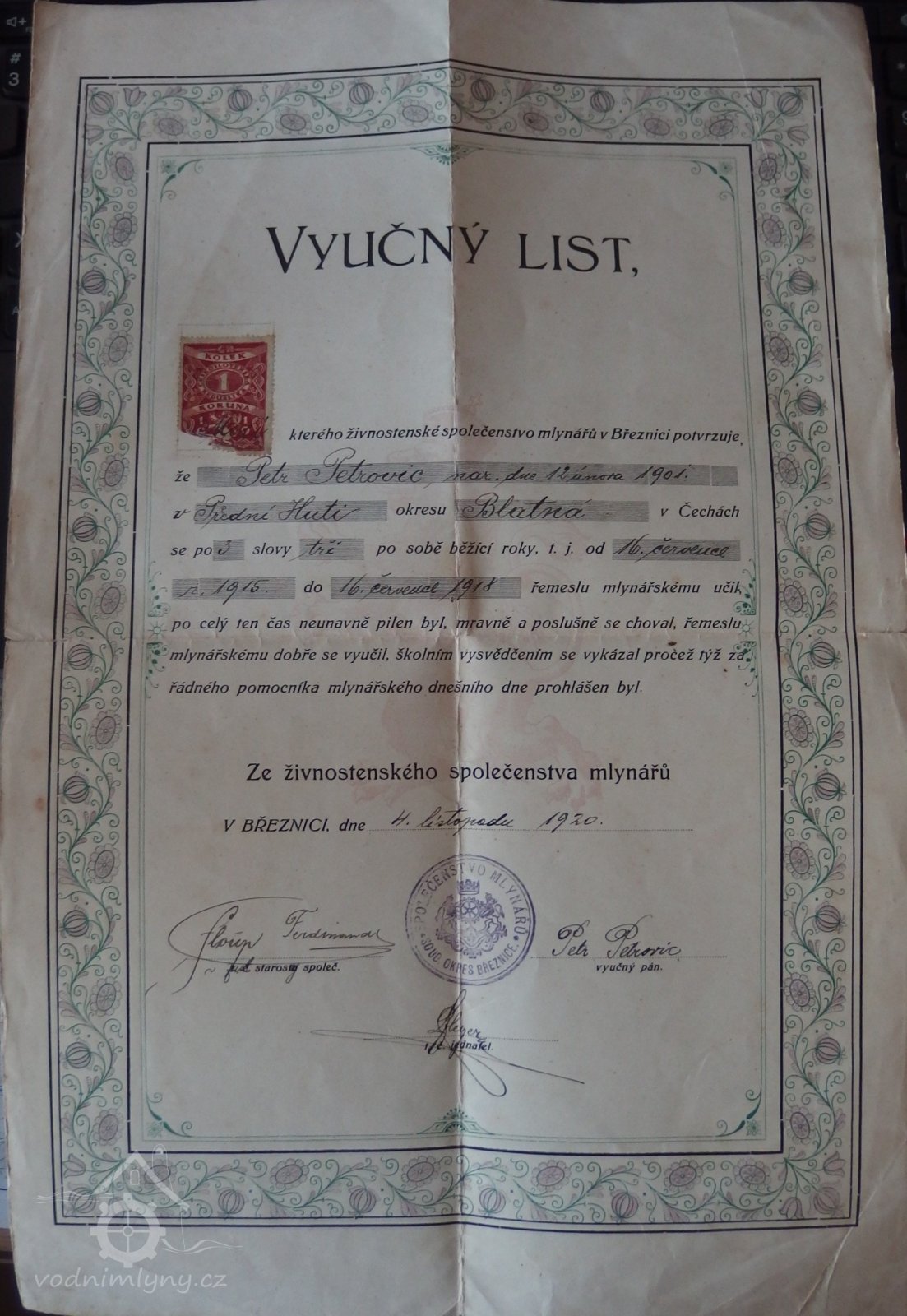 PopisV roce 1930 kolo na svrchní vodu - 102 l/s, spád 3,4 m a výkon 2,9 HP.
