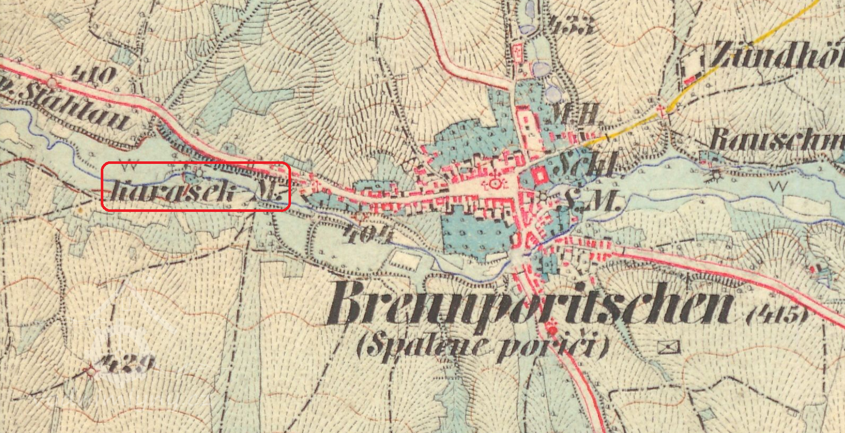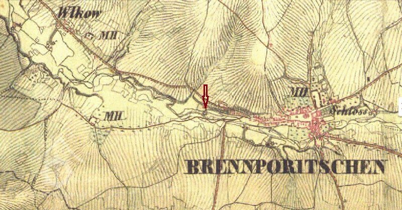 900 m západně od kostela sv. Mikuláše ve Spáleném Poříčí